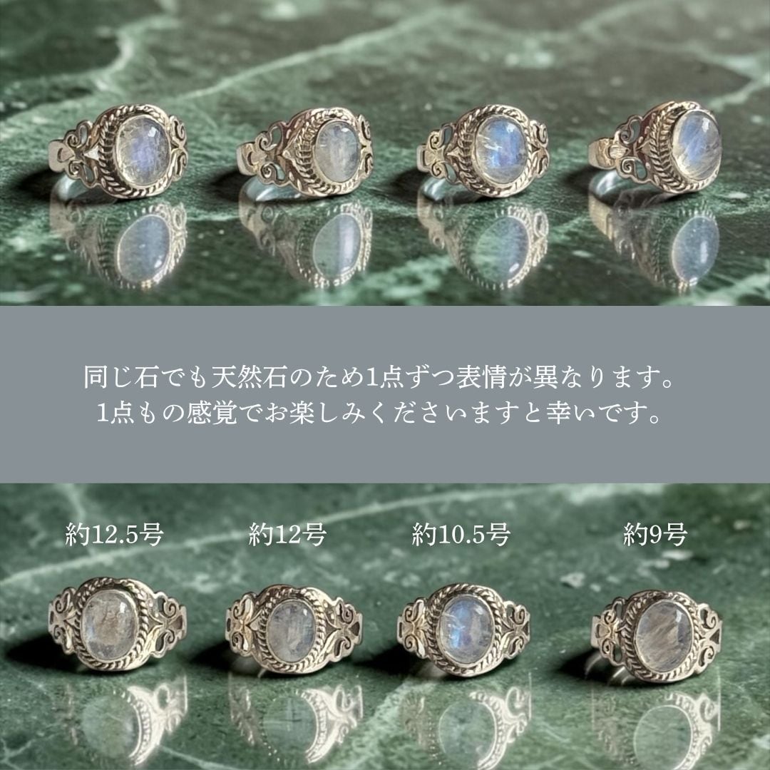 ・天然石ムーンストーン(乳白):約9号〜約12.5号