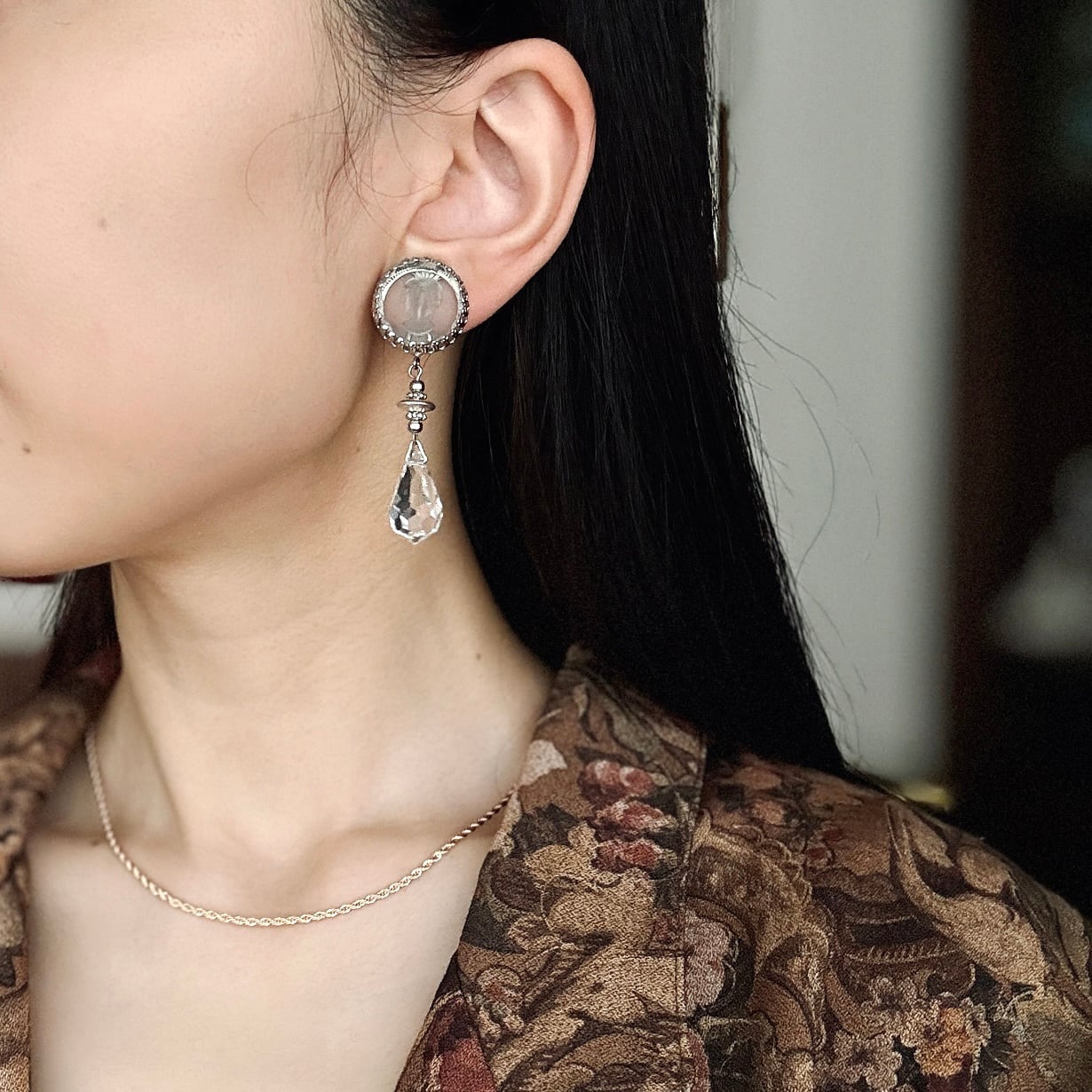 イヤリングはボトムを着脱できる仕組みで、トップのみでも小ぶりにお使いいただけます。また、お手持ちのイヤリングにボトムをつけて、アレンジしてお使いいただくこともできます。