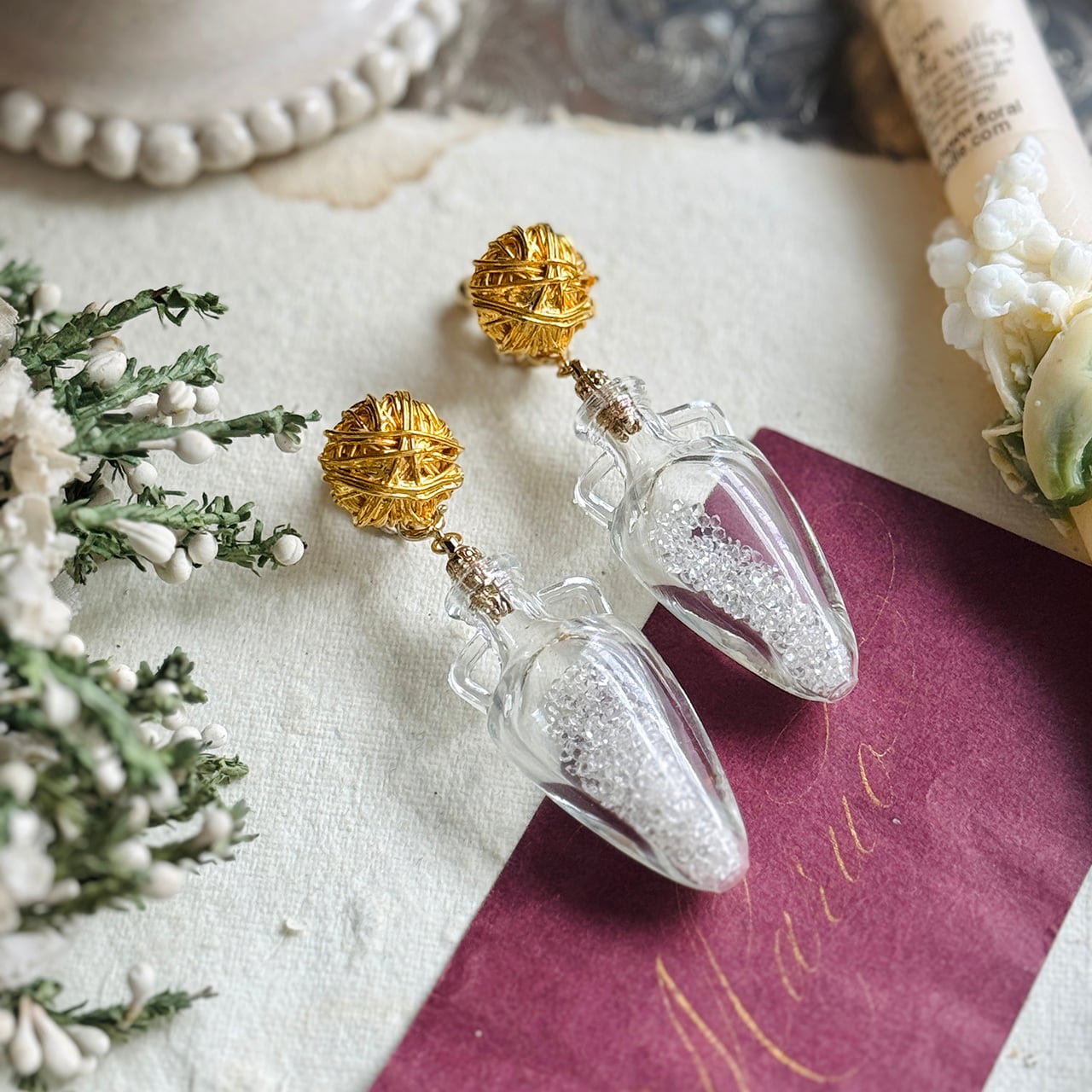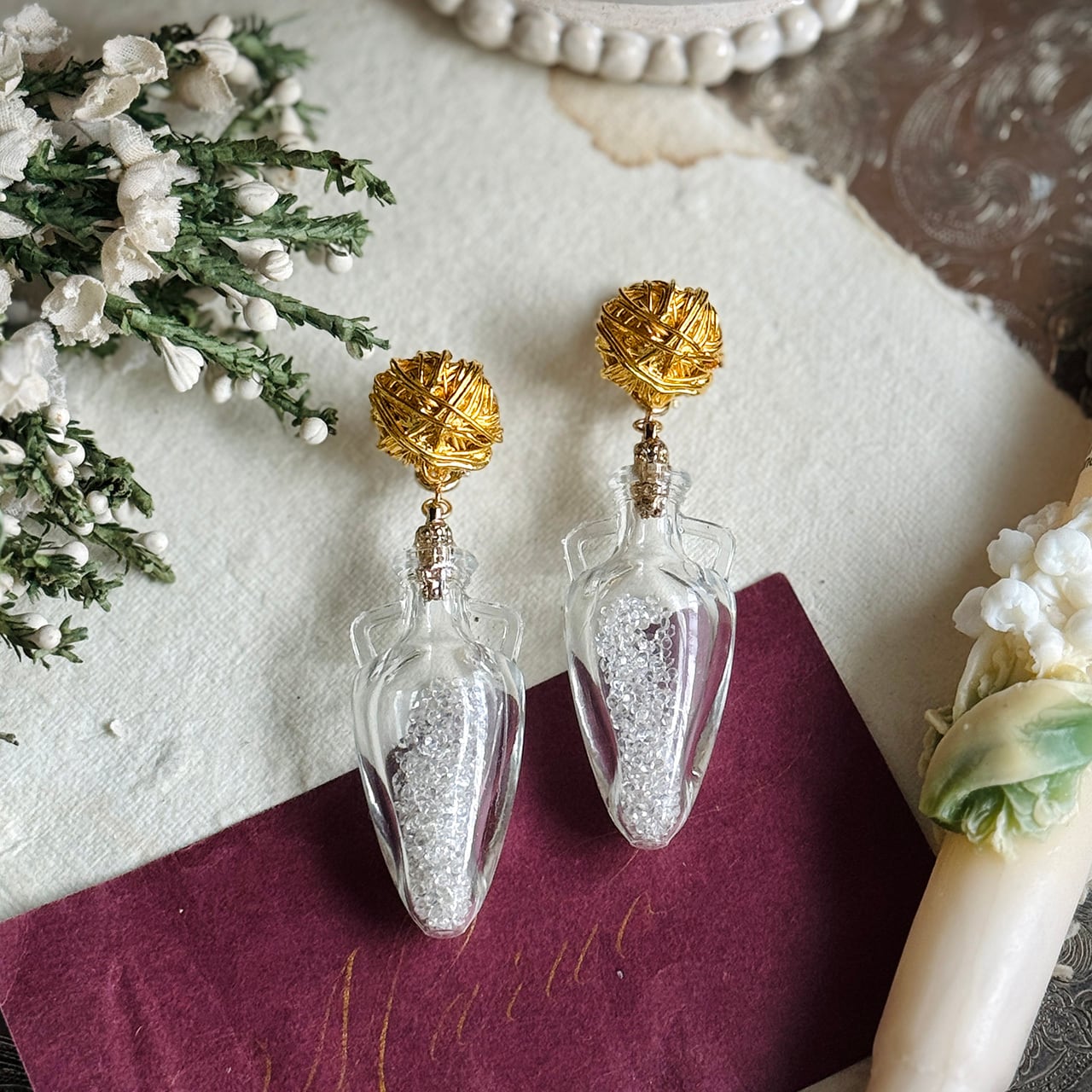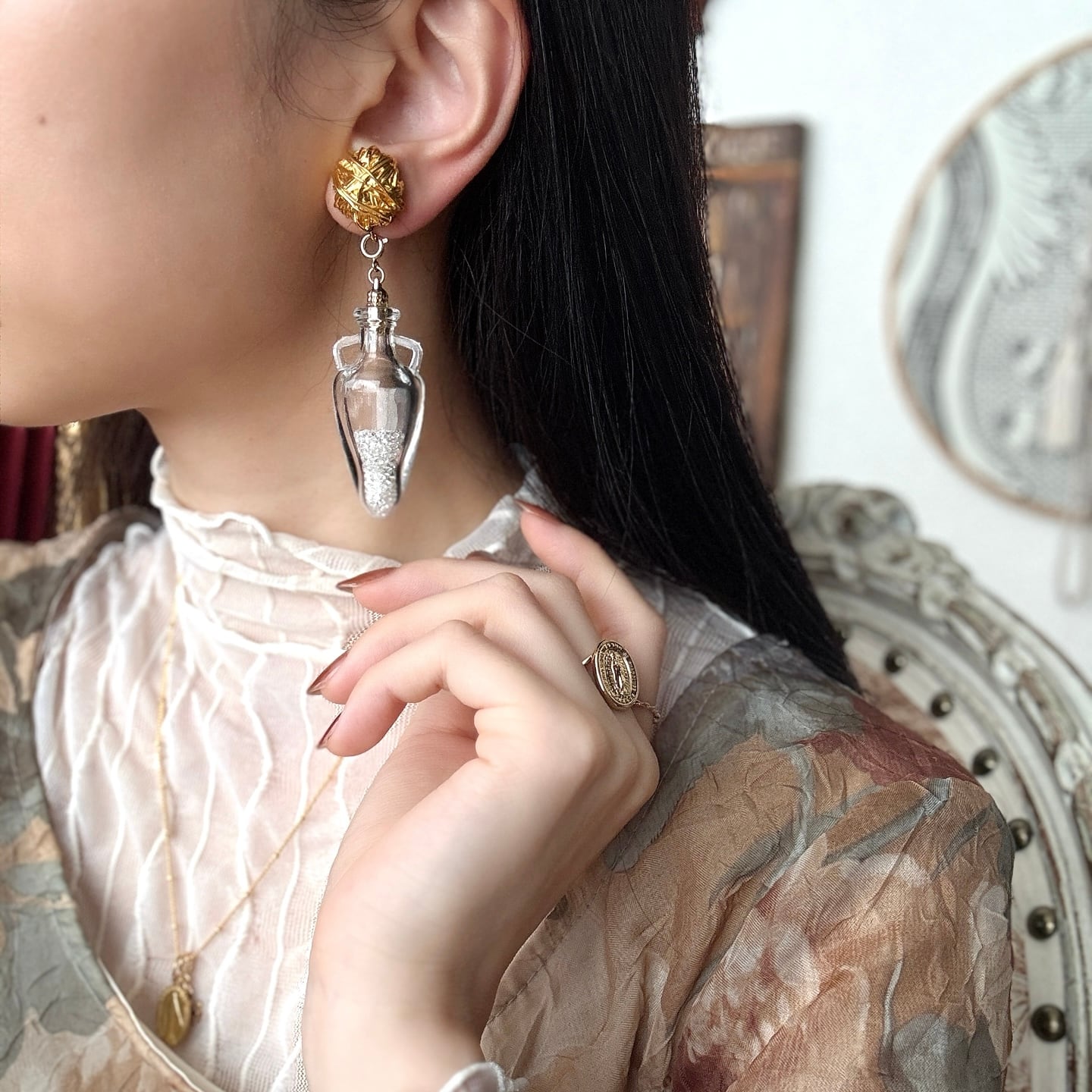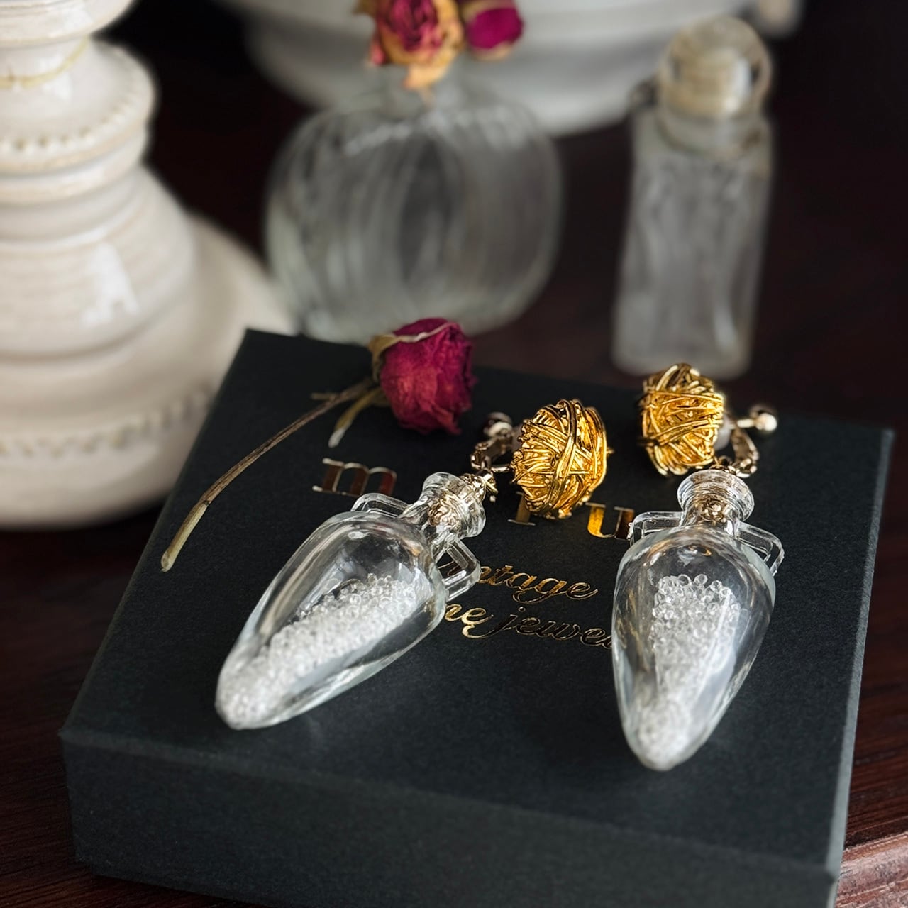 時の香りを閉じ込めたような、小さなボトルのイヤリング。