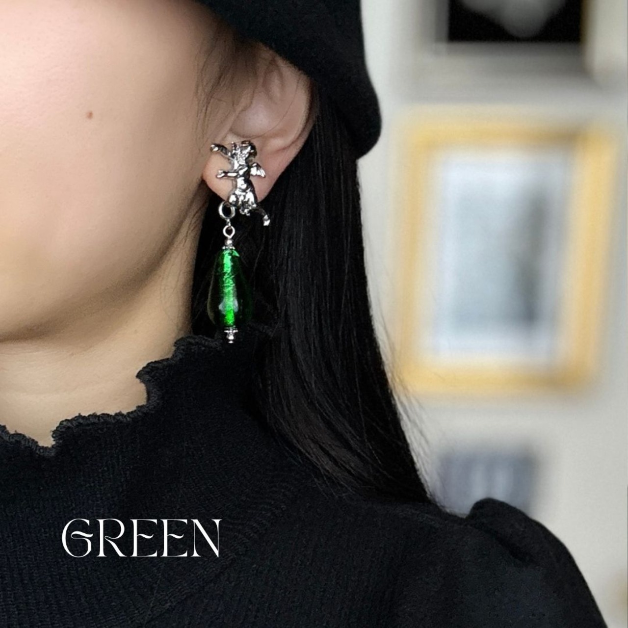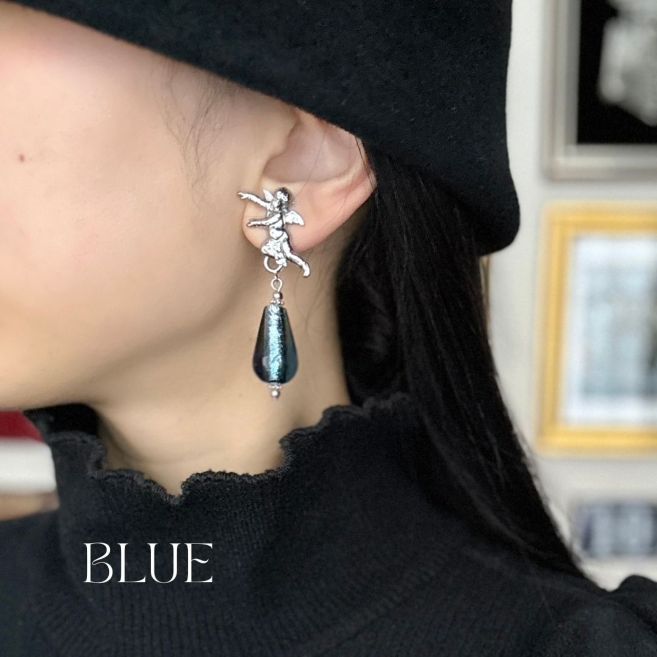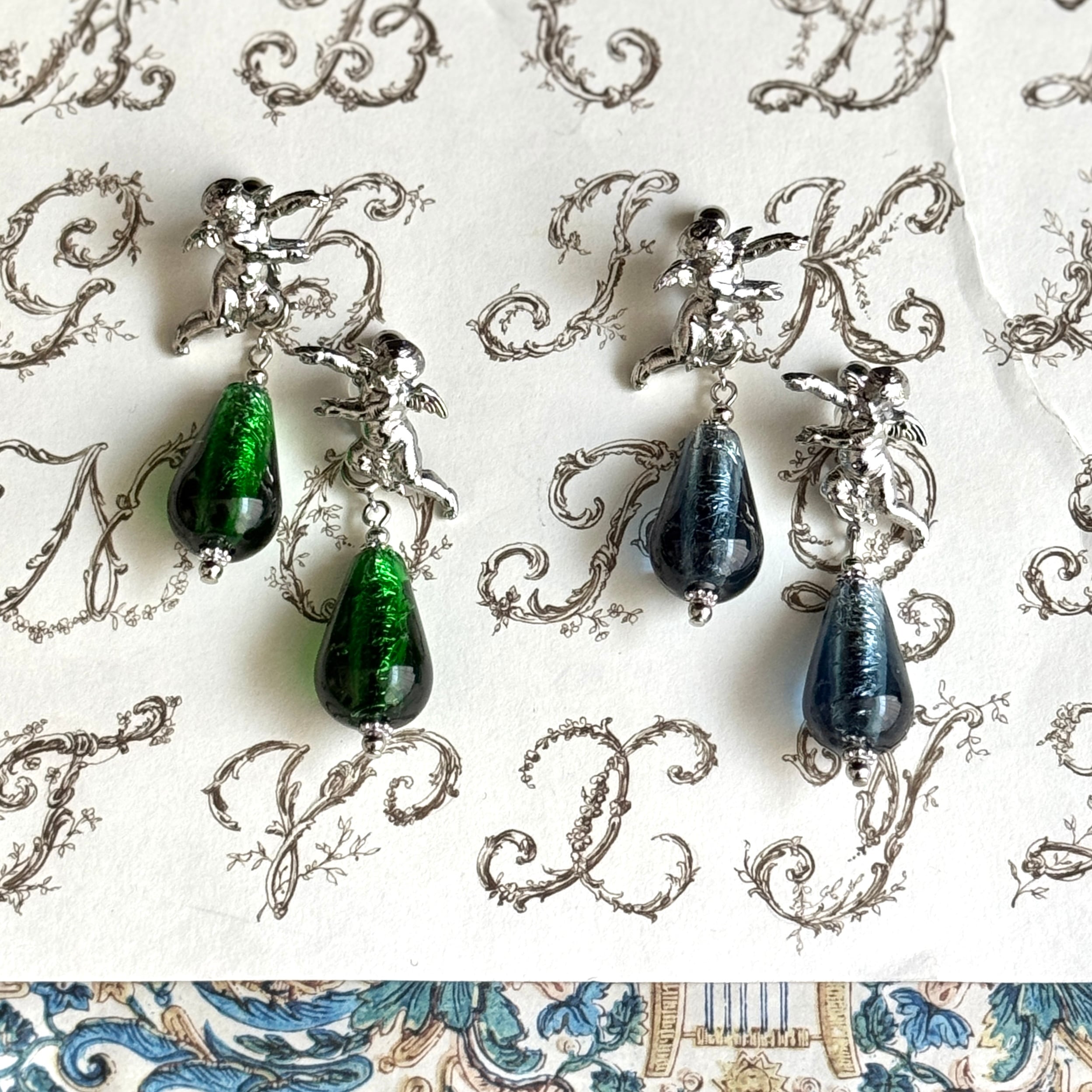 ヴィンテージのヴェネチアンガラスが耳元で揺れるデザイン。