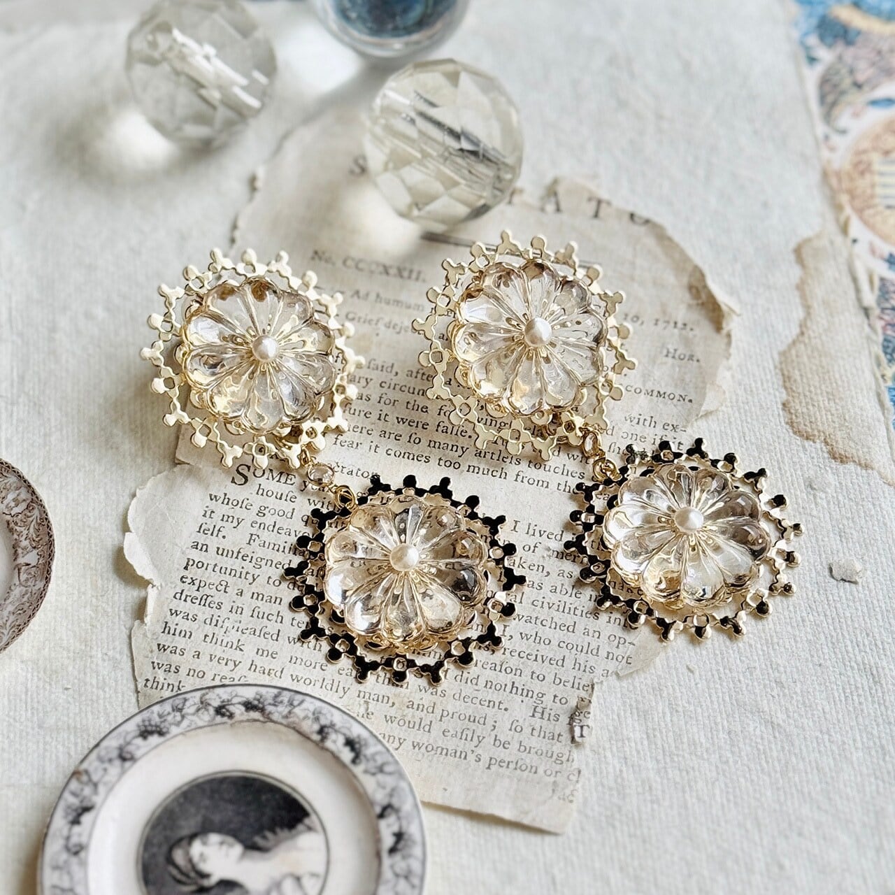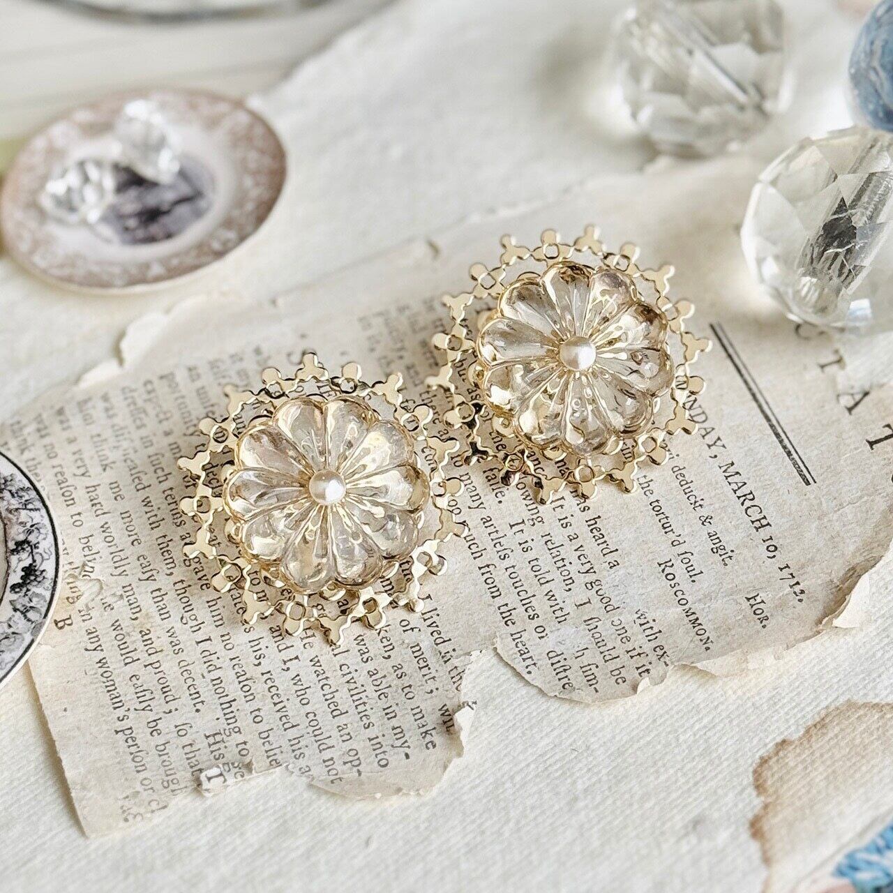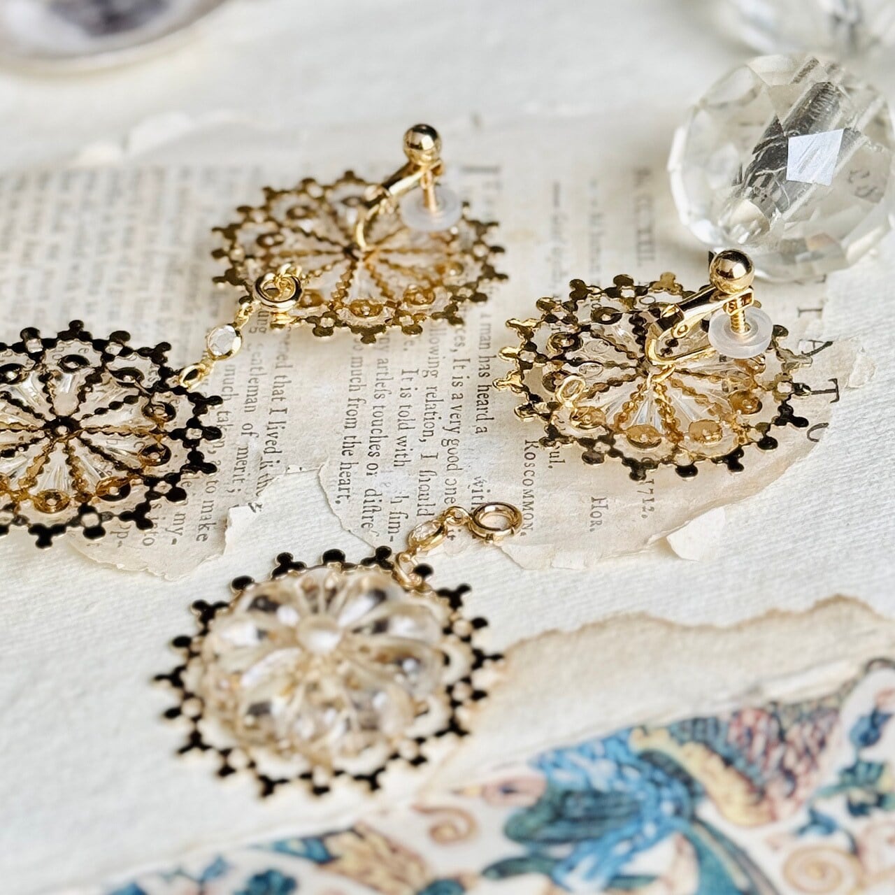 【イヤリング/ピアス】フランスantiqueモチーフ,フランスvintageシャンデリアガラス