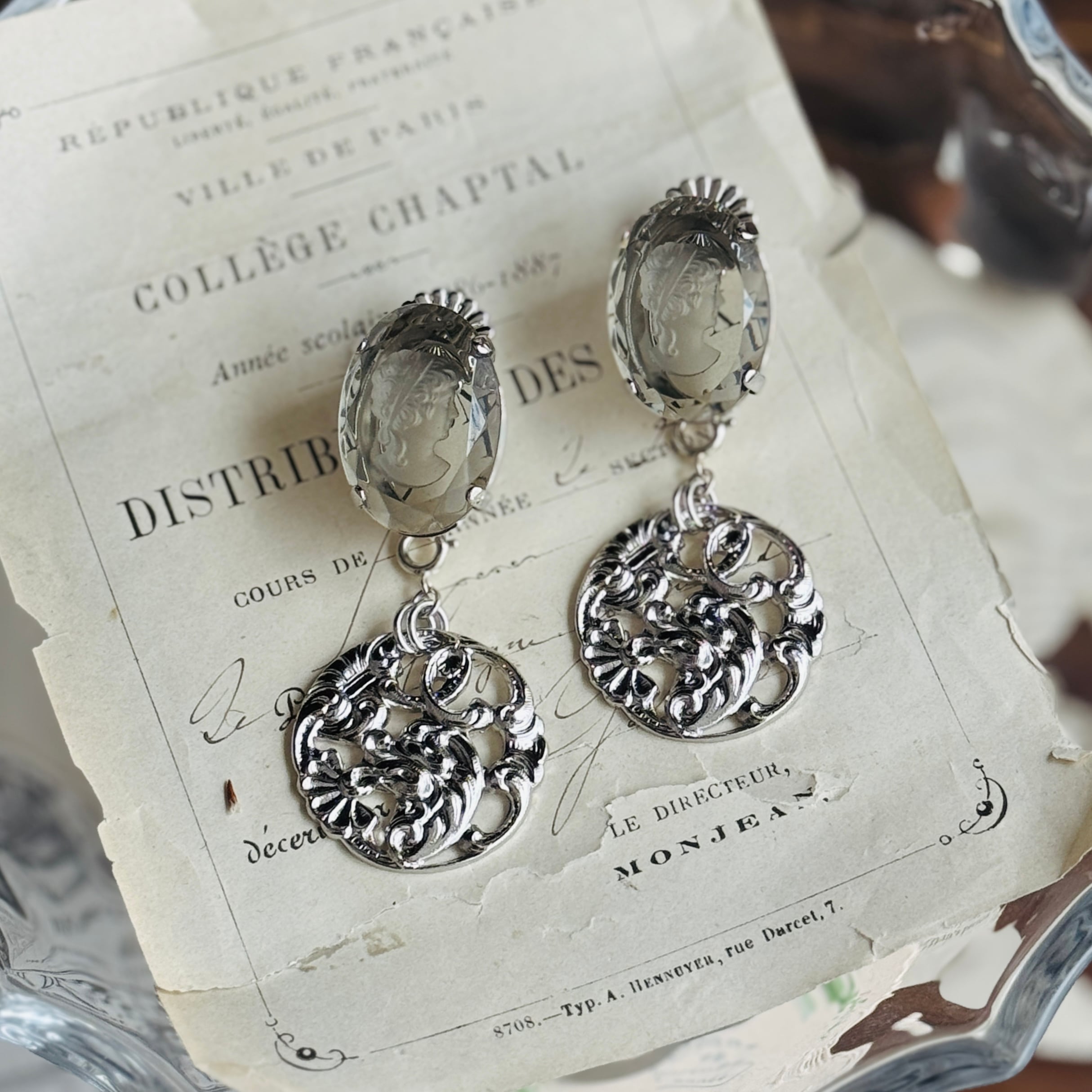 フランスvintageインタリオガラス、フランスantiqueモチーフ