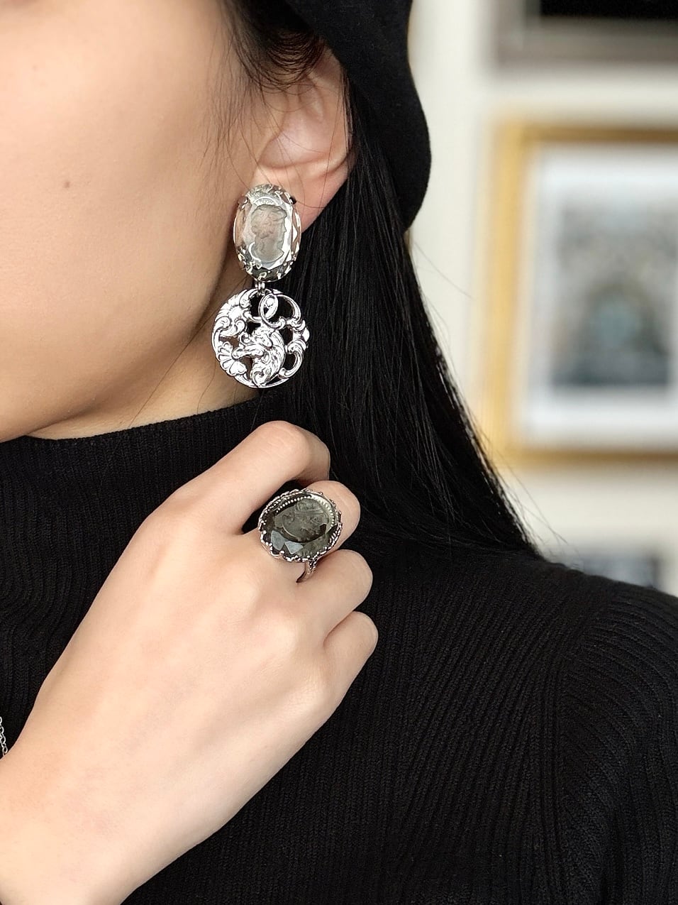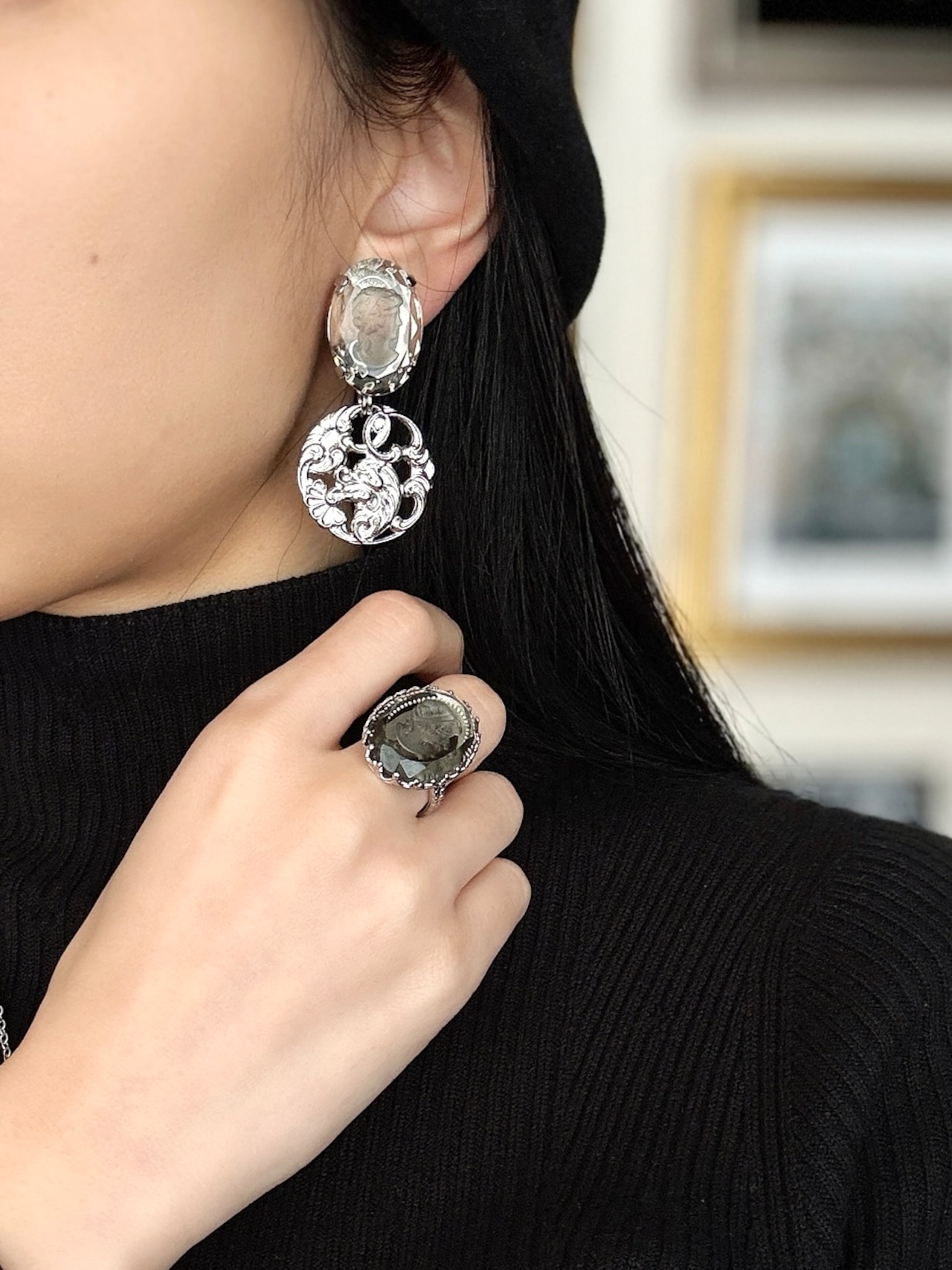 ★同じインタリオガラスを使用した、ネックレスとリングも同時出品中です