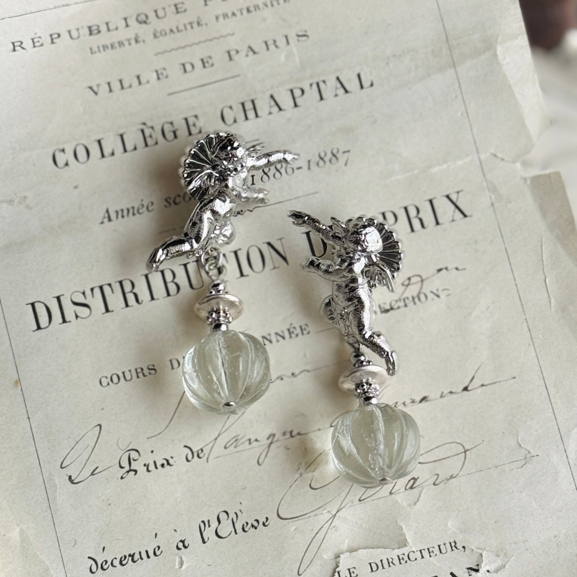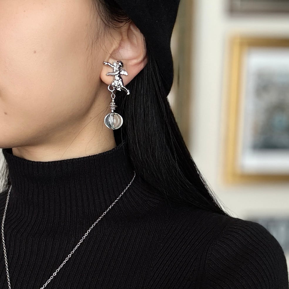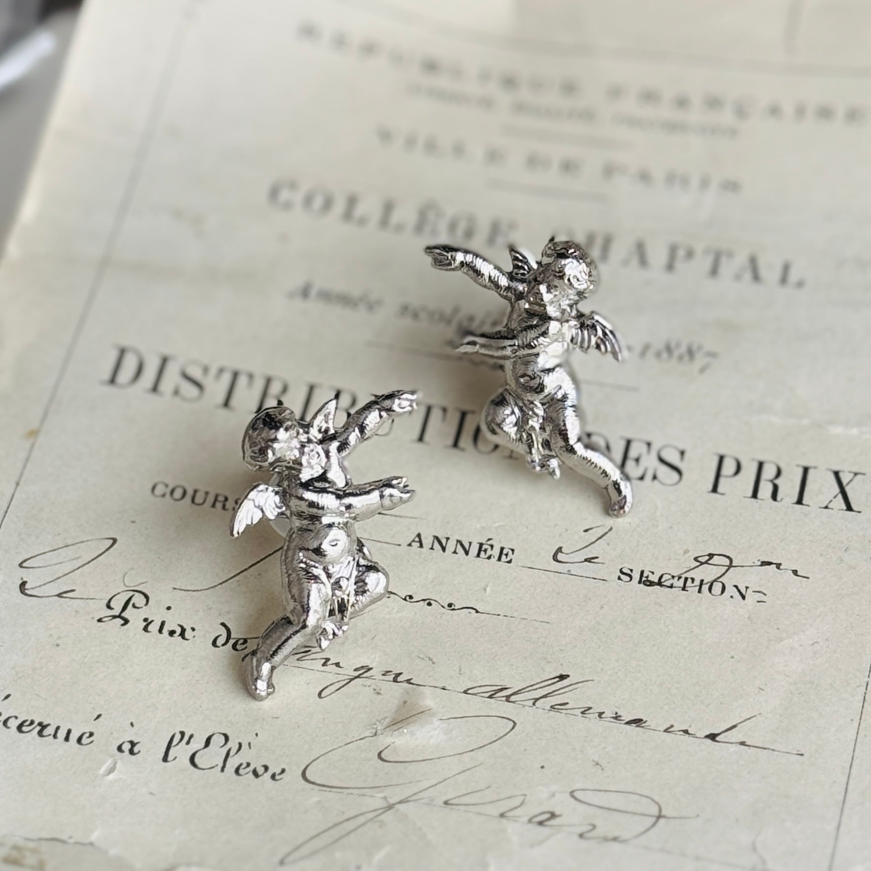 背に小さな翼を持つ、アモルモチーフの愛らしいジュエリー。