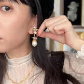 フランスヴィンテージパールが耳元で揺れるデザイン。