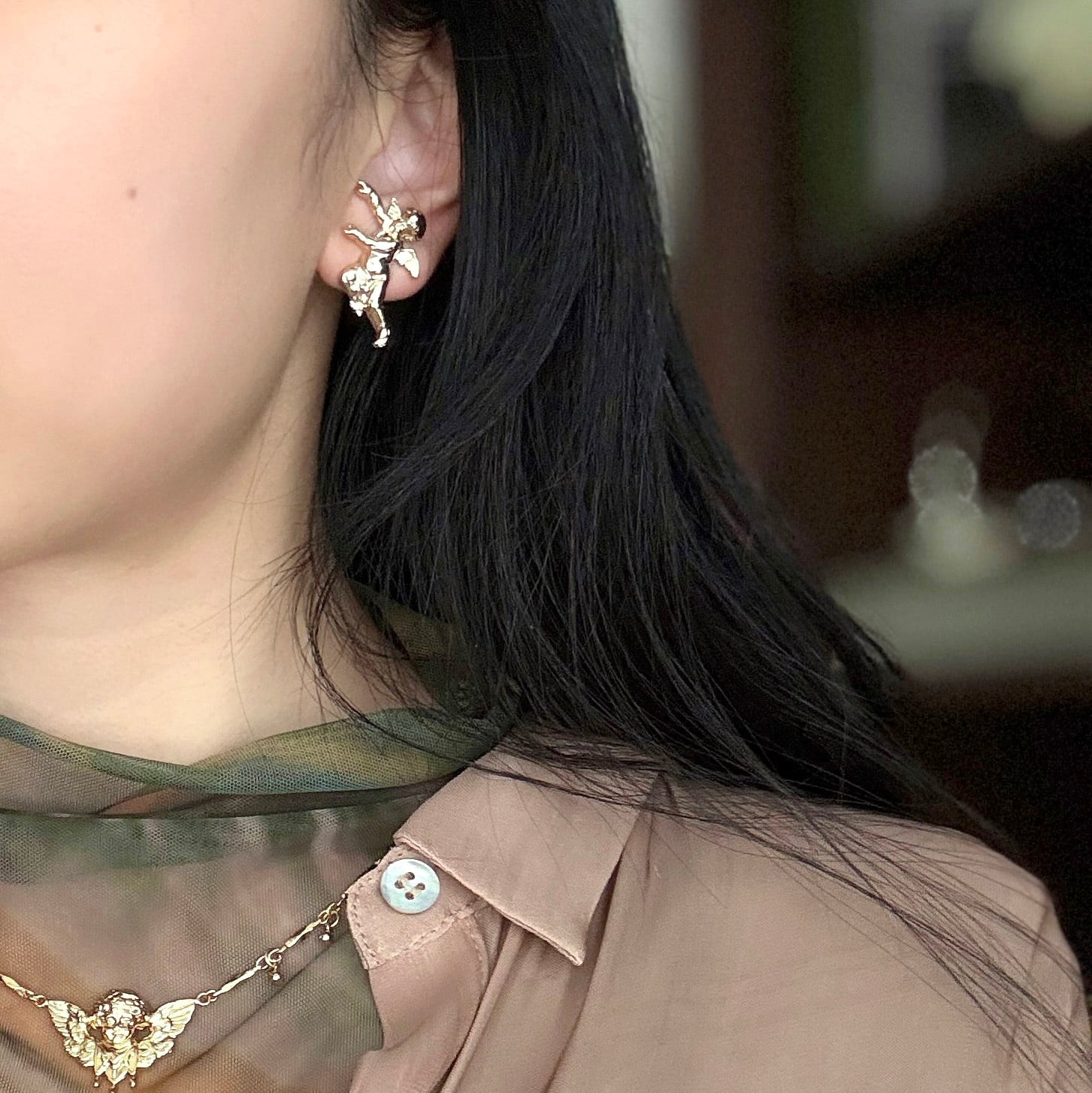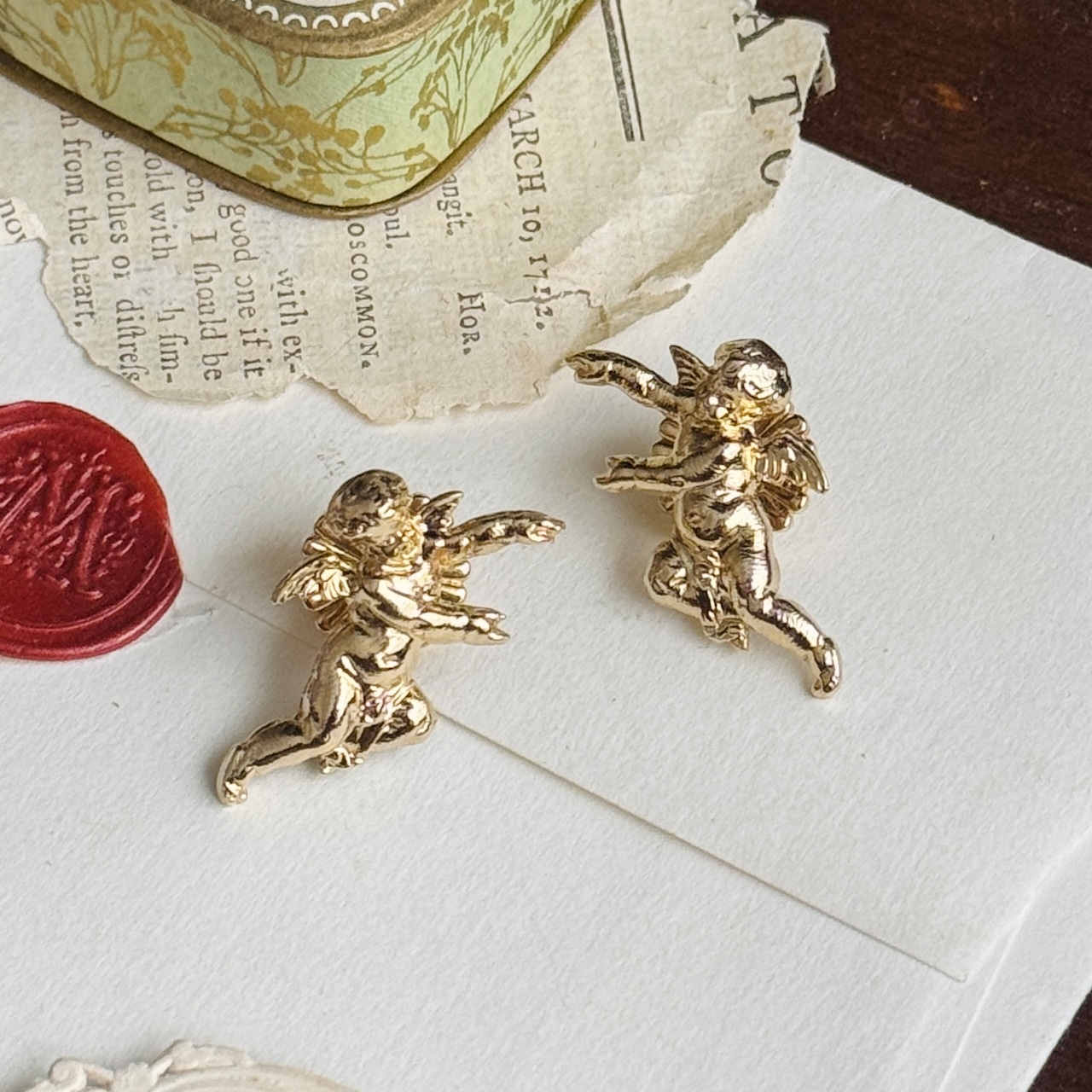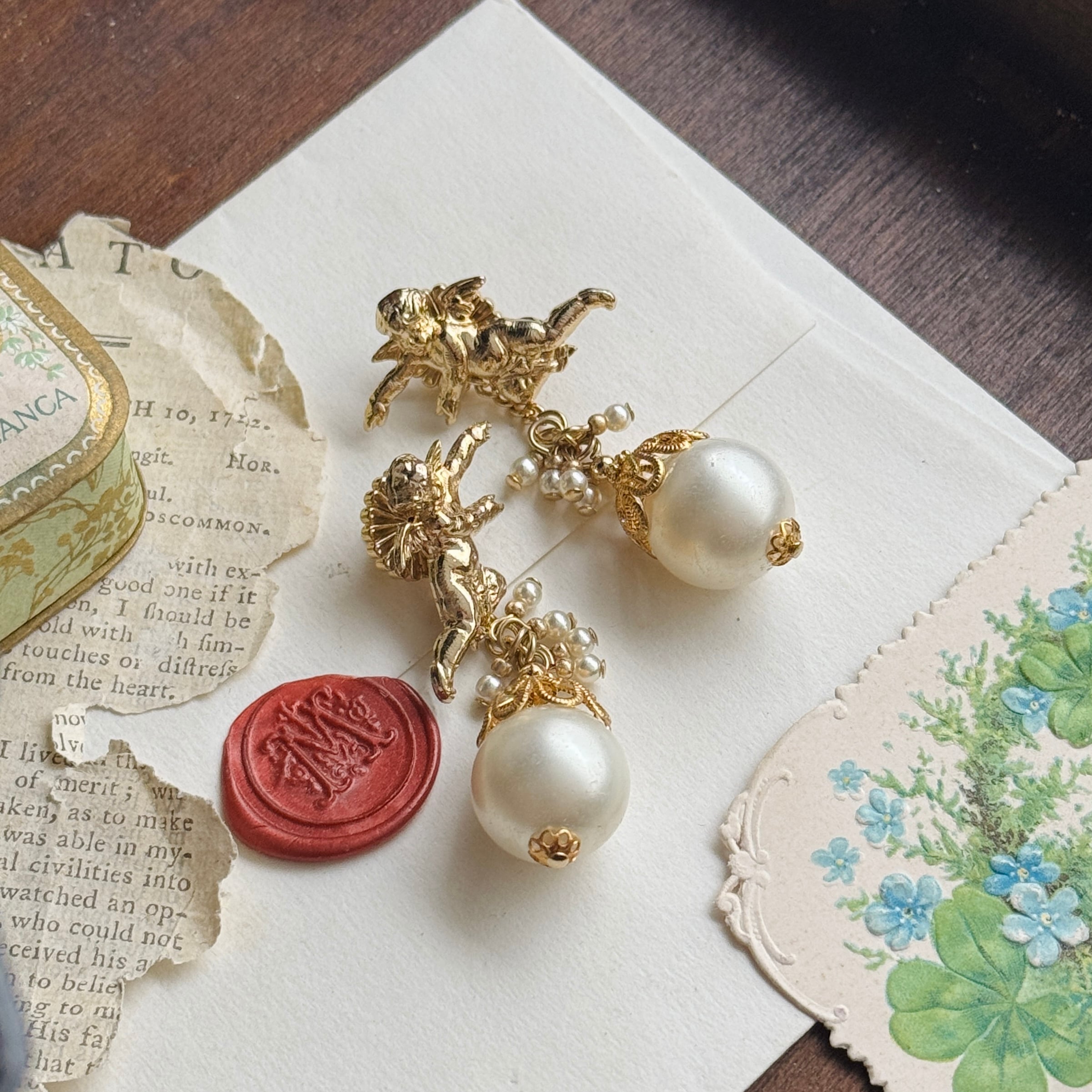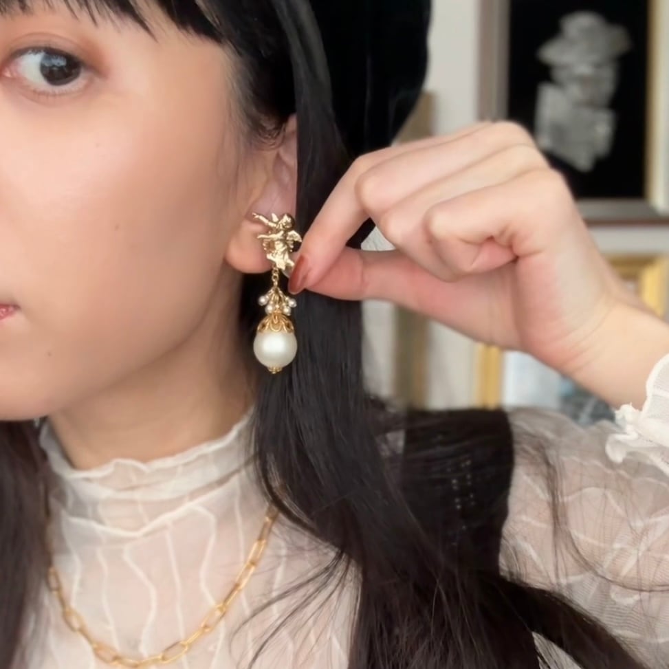 あなたの耳元で、アモルがふわふわと舞うようなデザイン。
