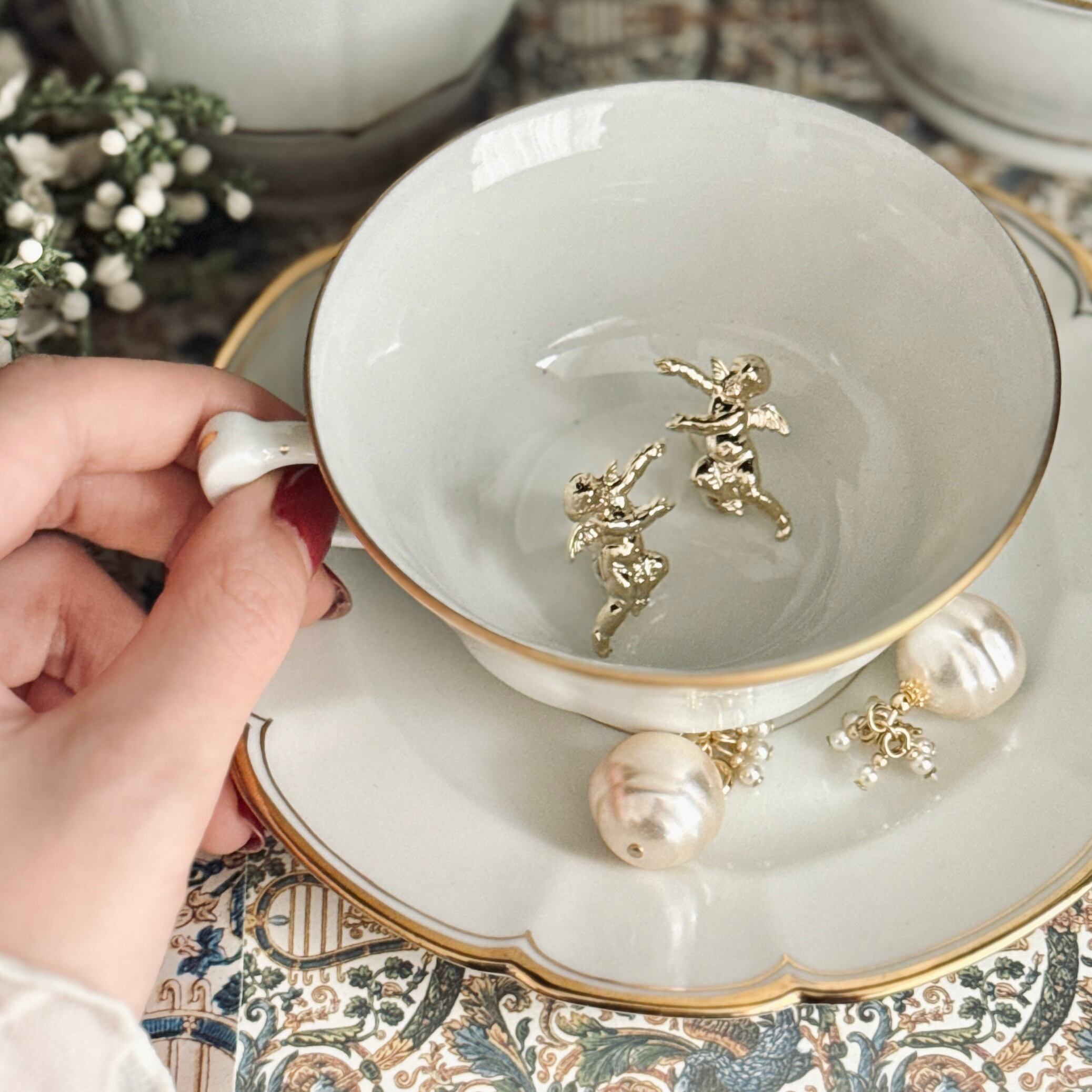 背に小さな翼を持つ、アモルモチーフの愛らしいジュエリー。