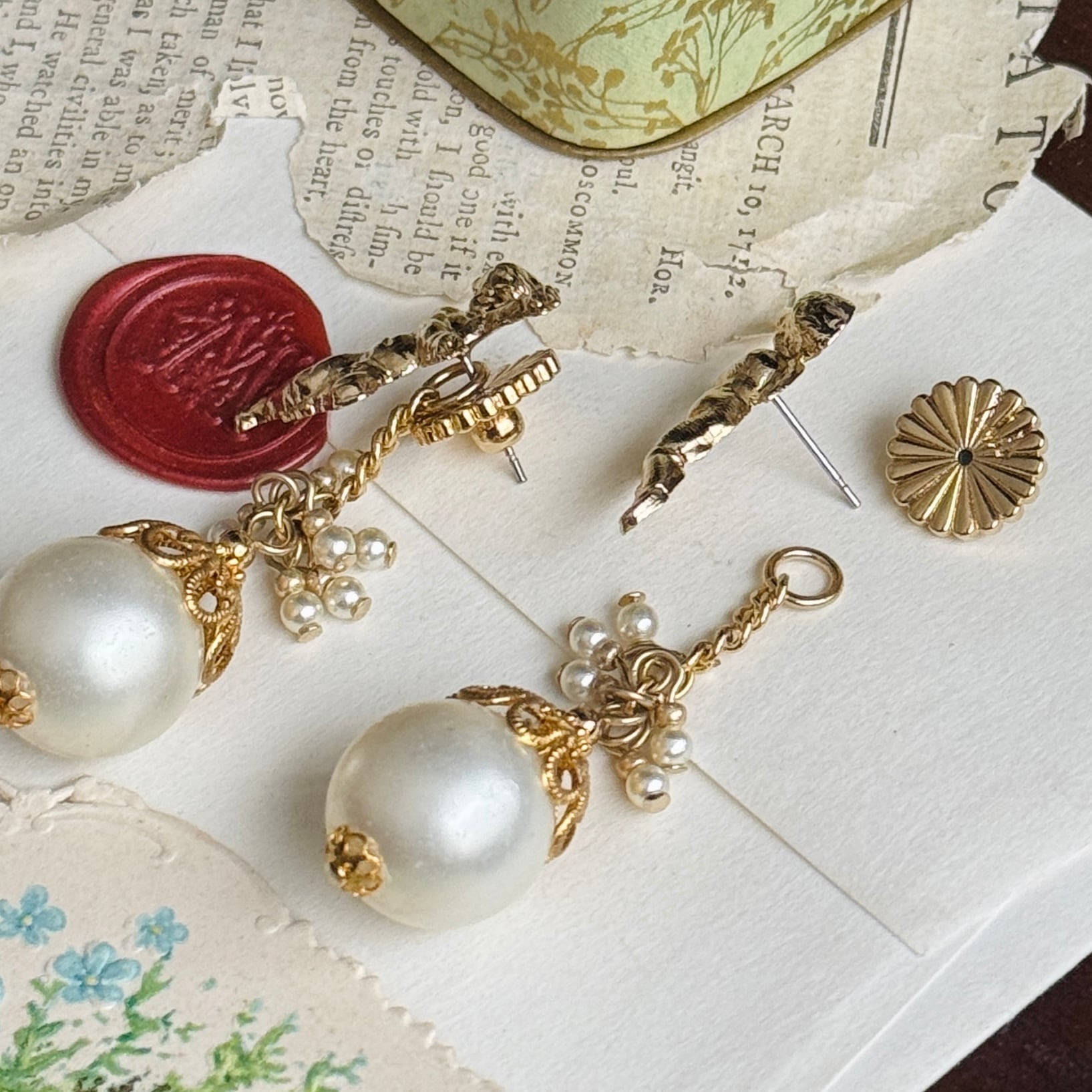 周りにあしらった小さなパールまで、フランスヴィンテージでこだわりました。
