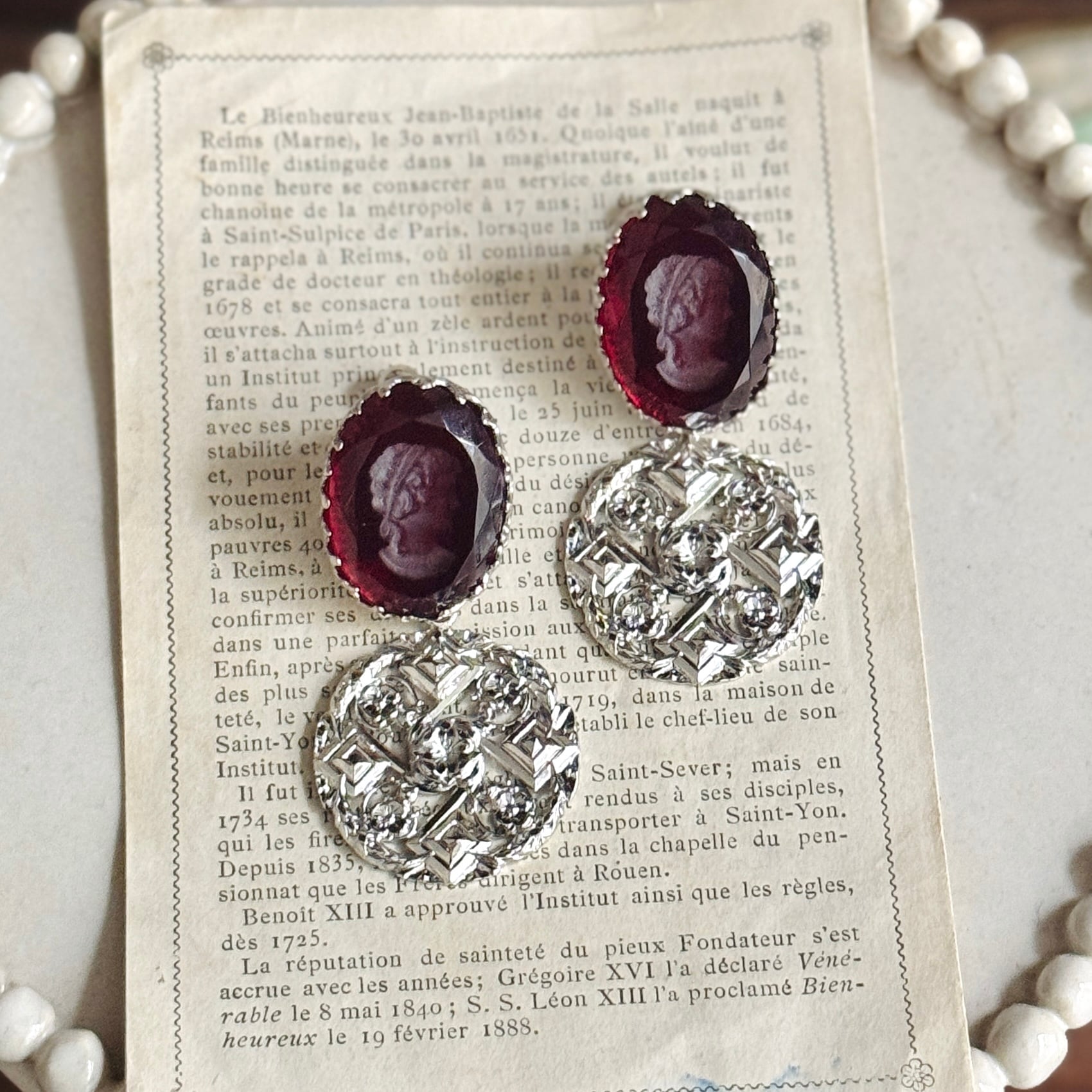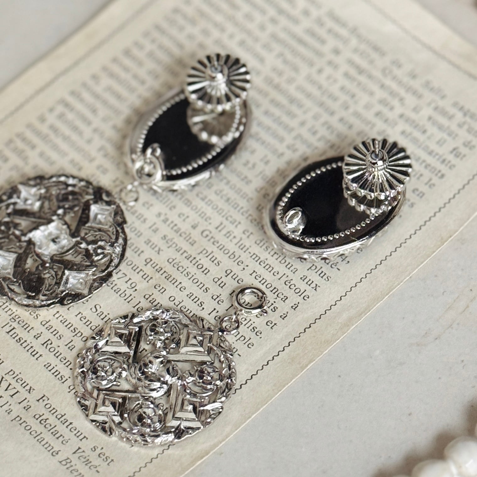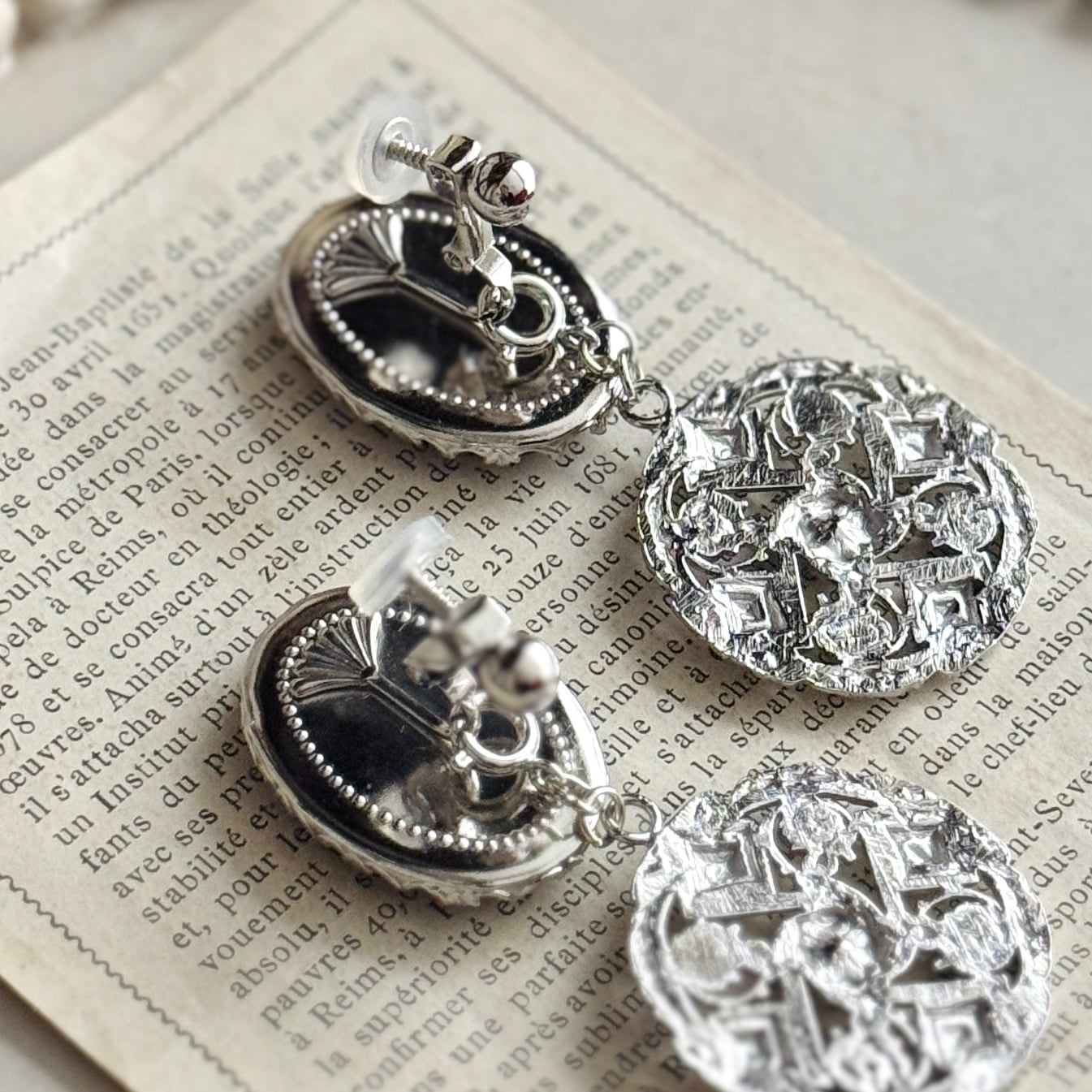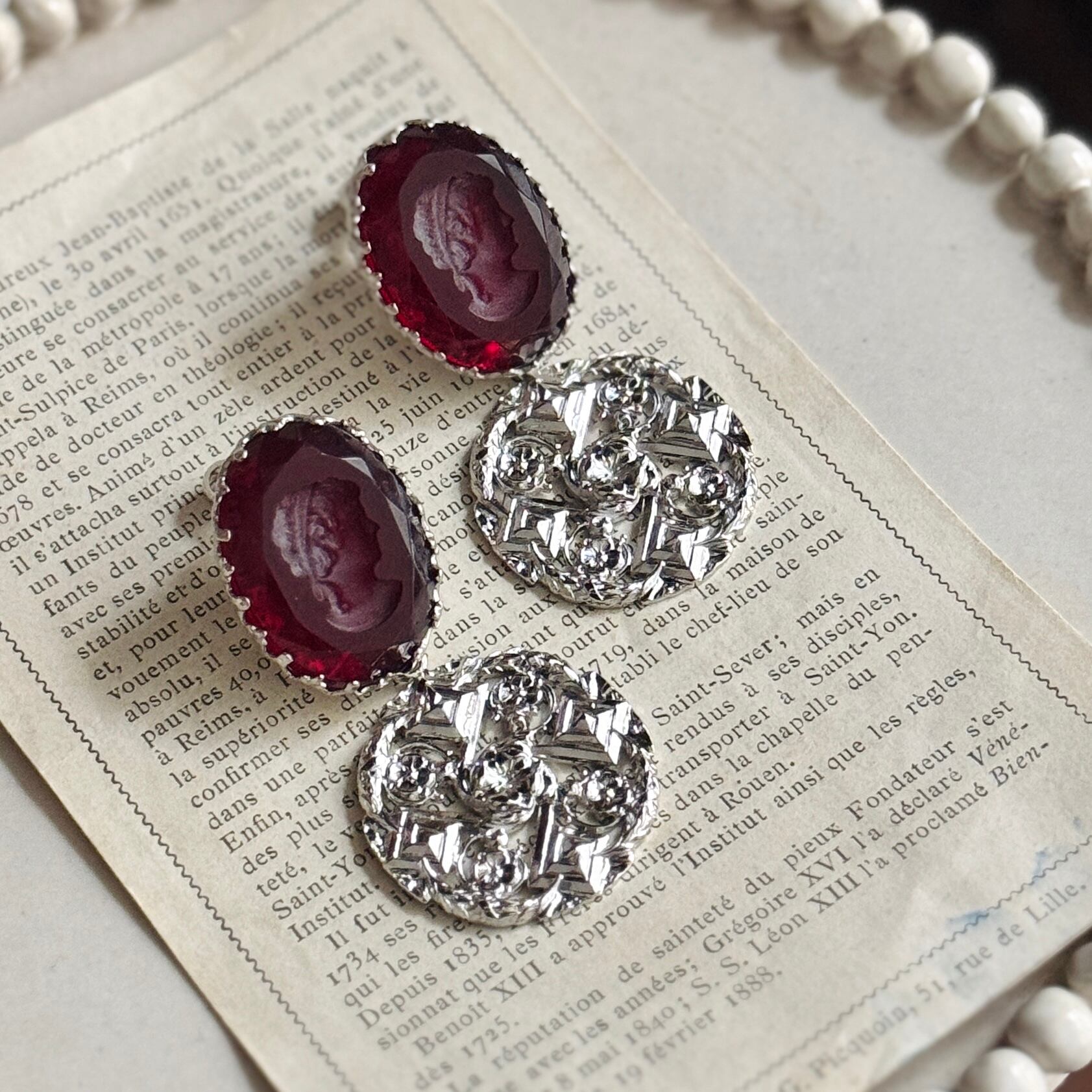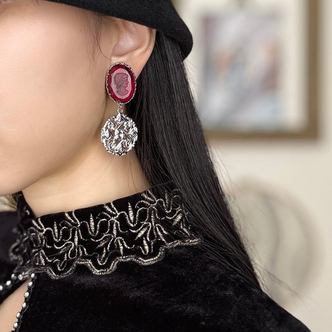 フランスヴィンテージモチーフを組み合わせた、時を超える肖像のイヤリングです。