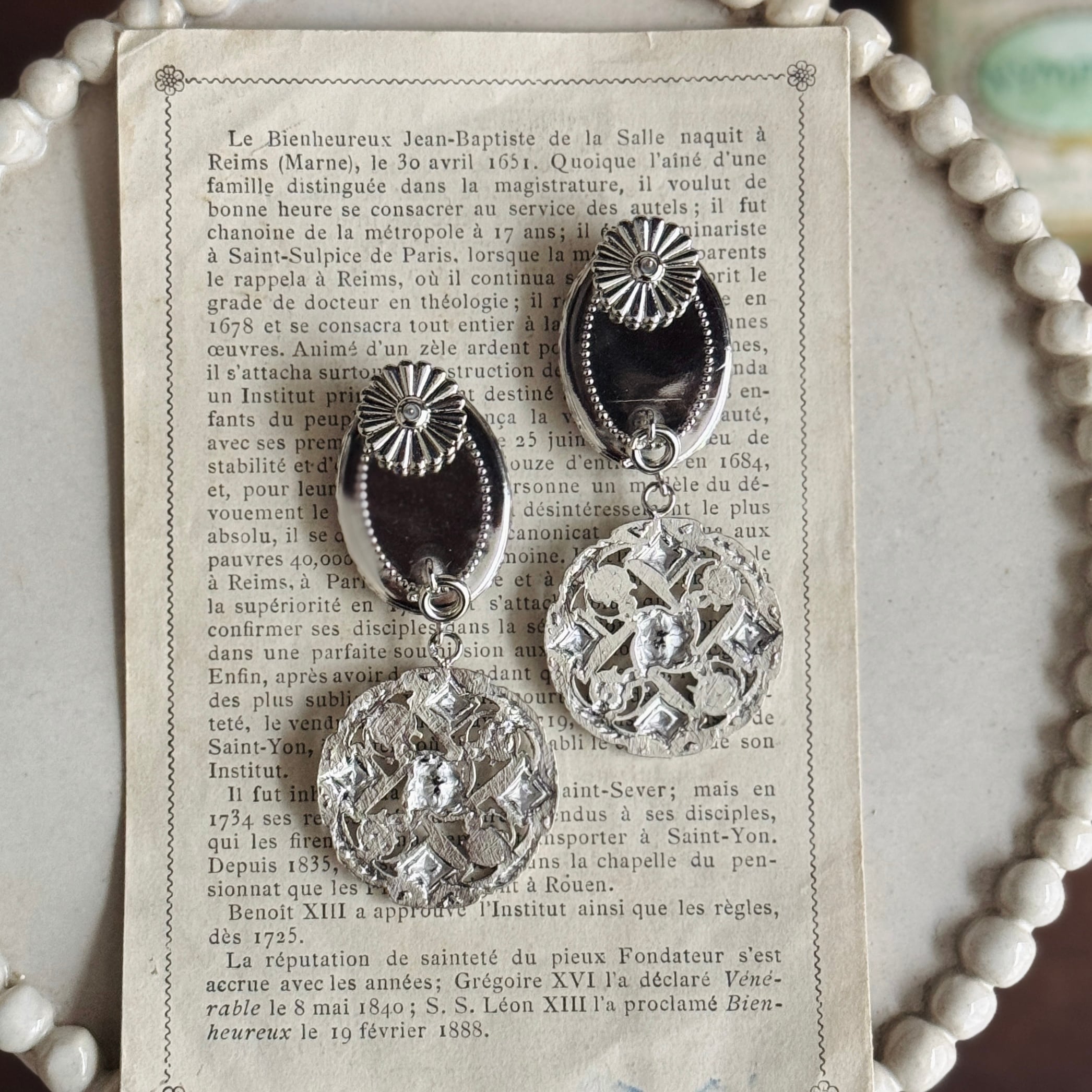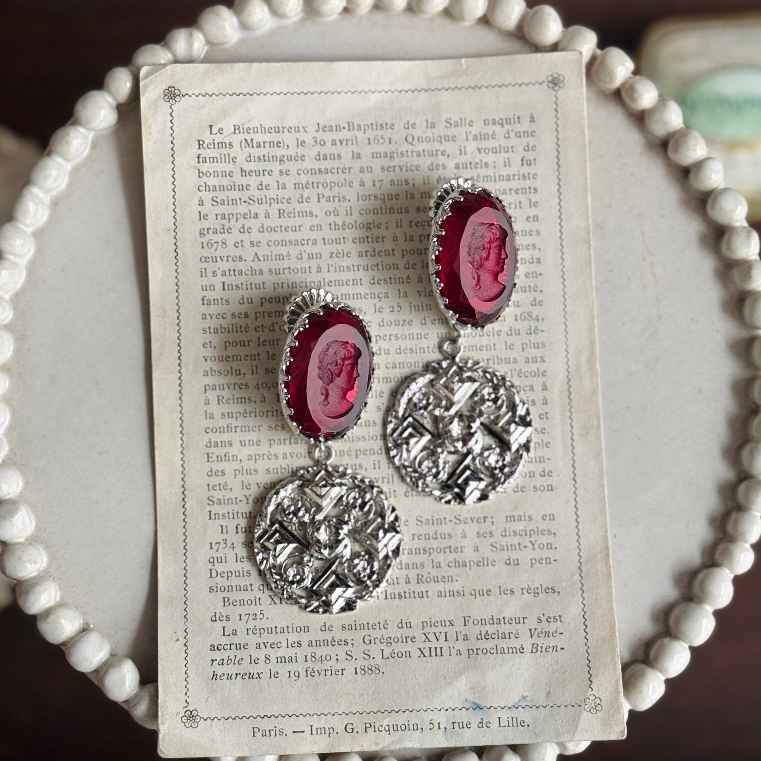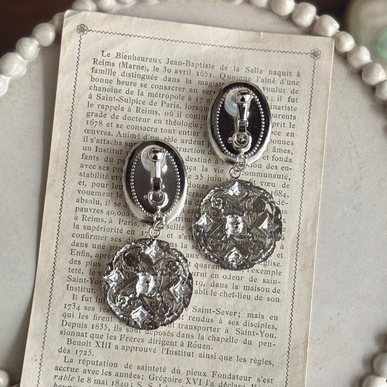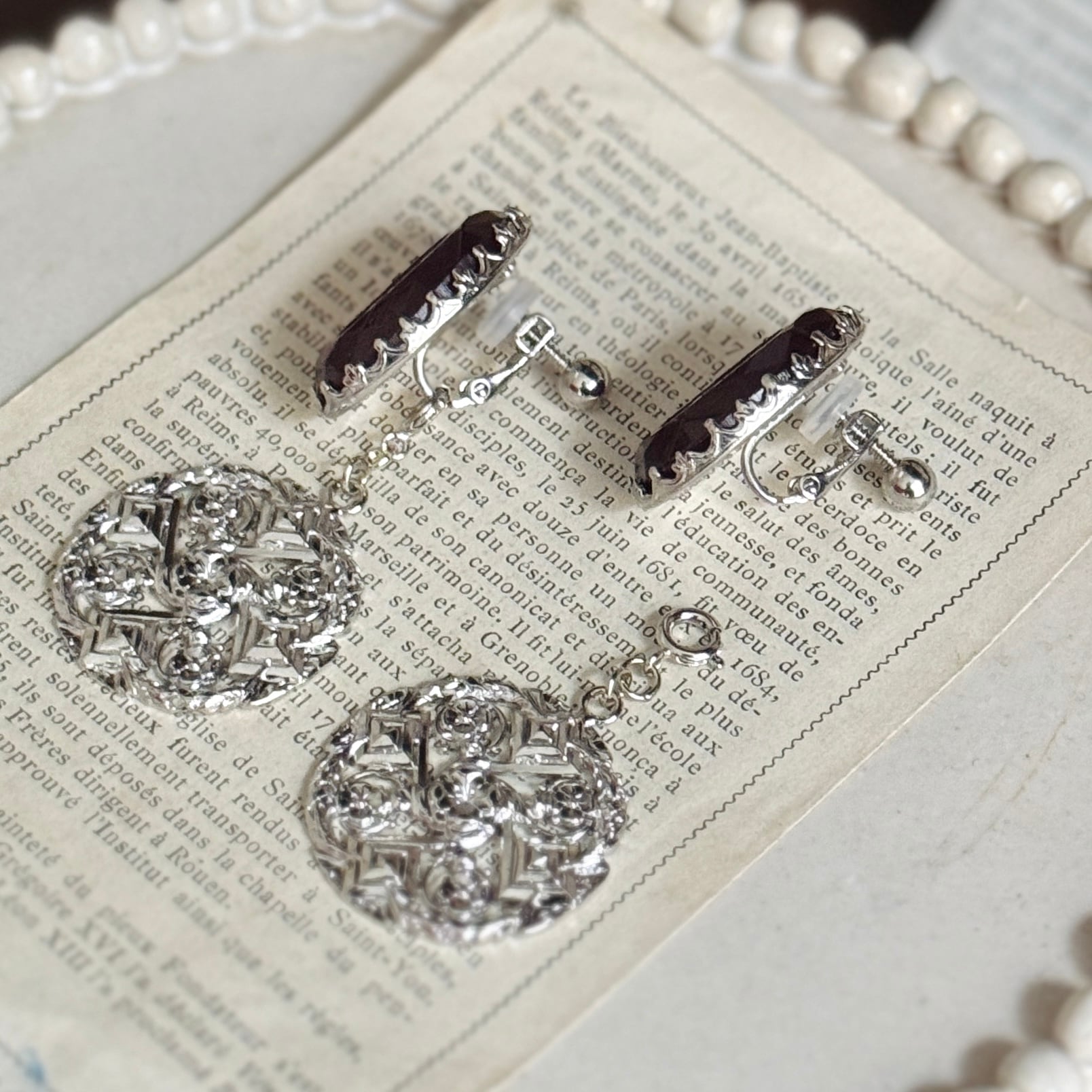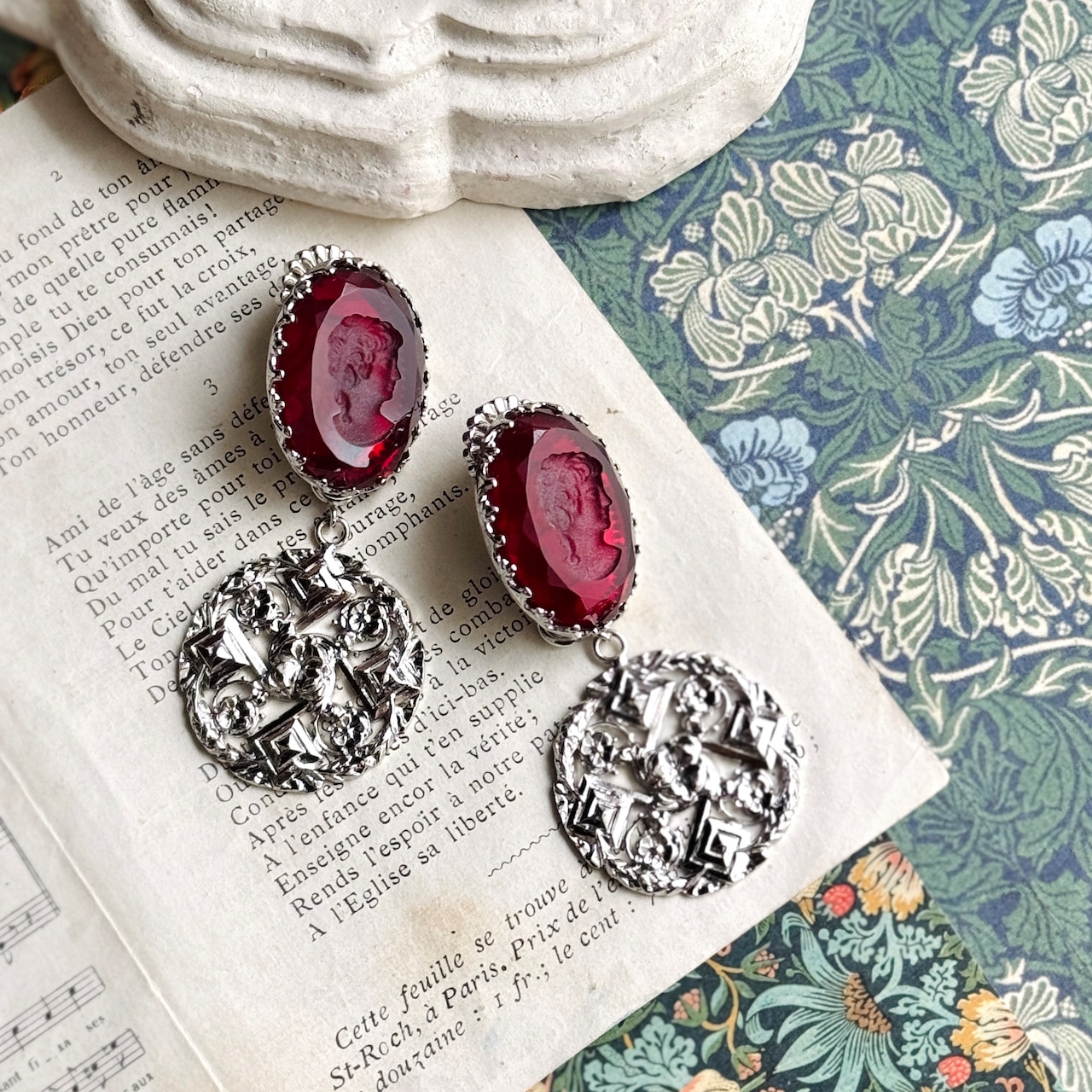 フランスヴィンテージモチーフを組み合わせた、時を超える肖像のイヤリングです。