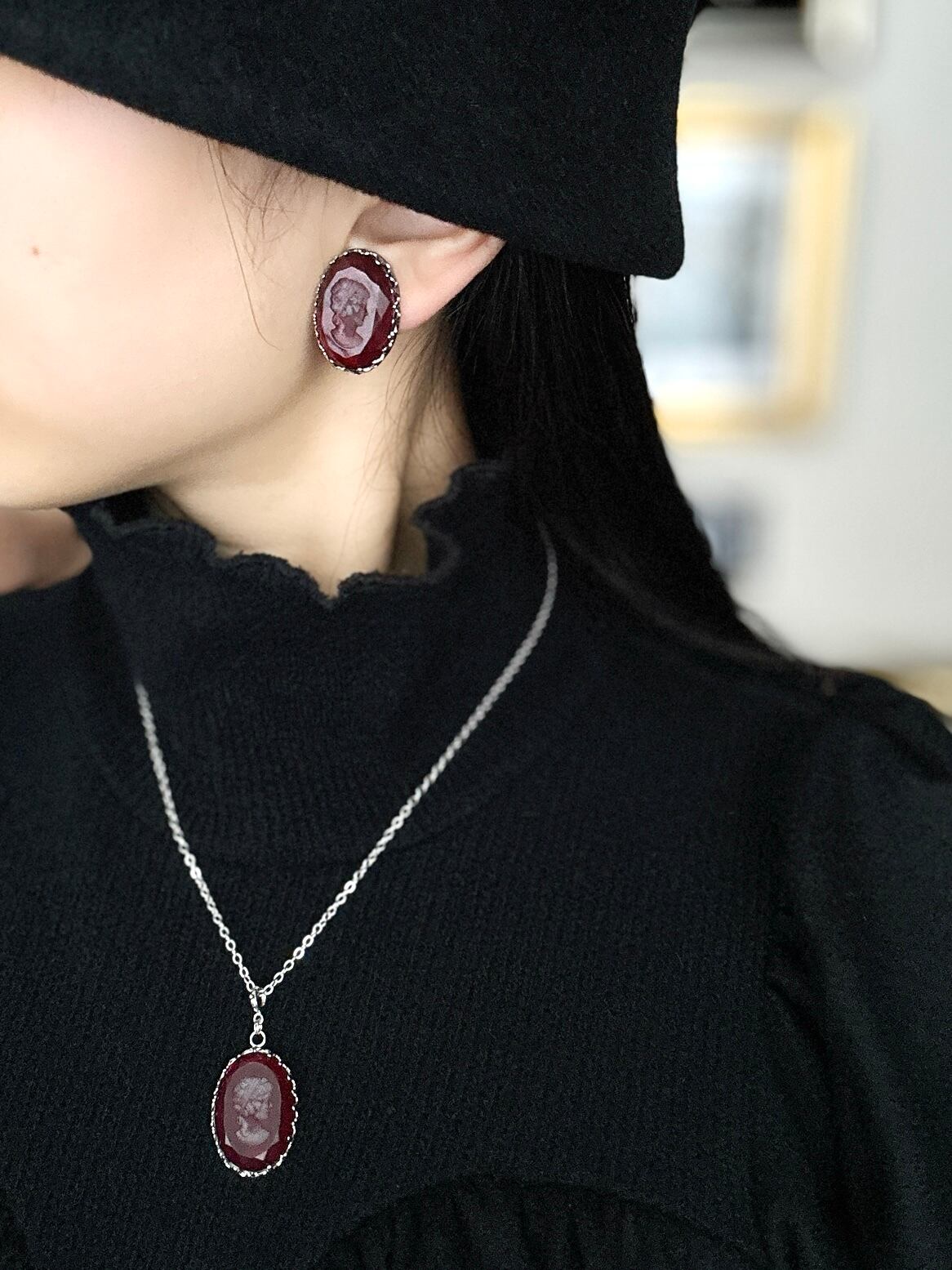 まるで小さな肖像画を耳元に飾るように。