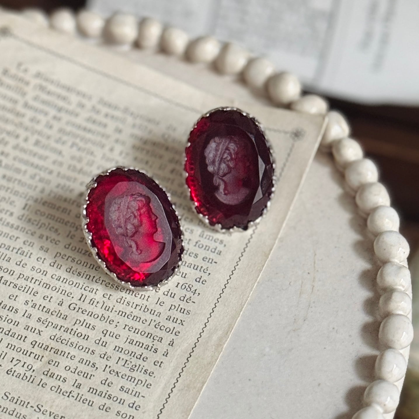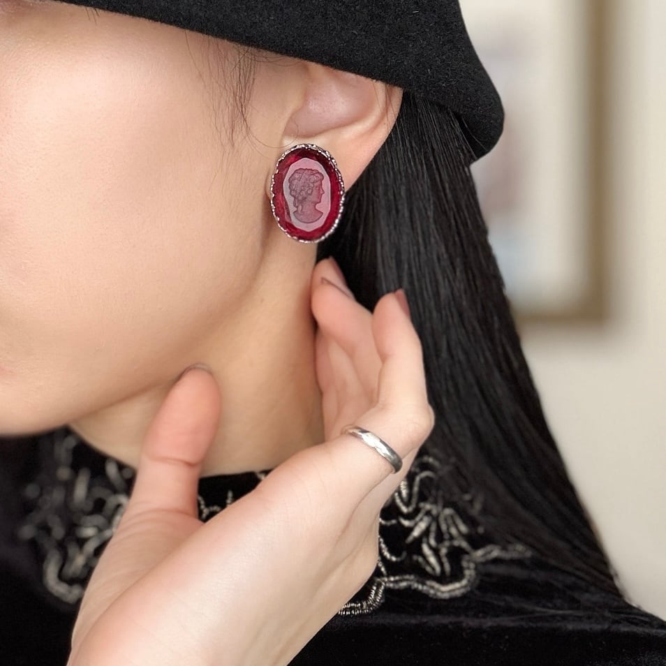 深紅のインタリオガラスに刻まれた、静かな横顔。