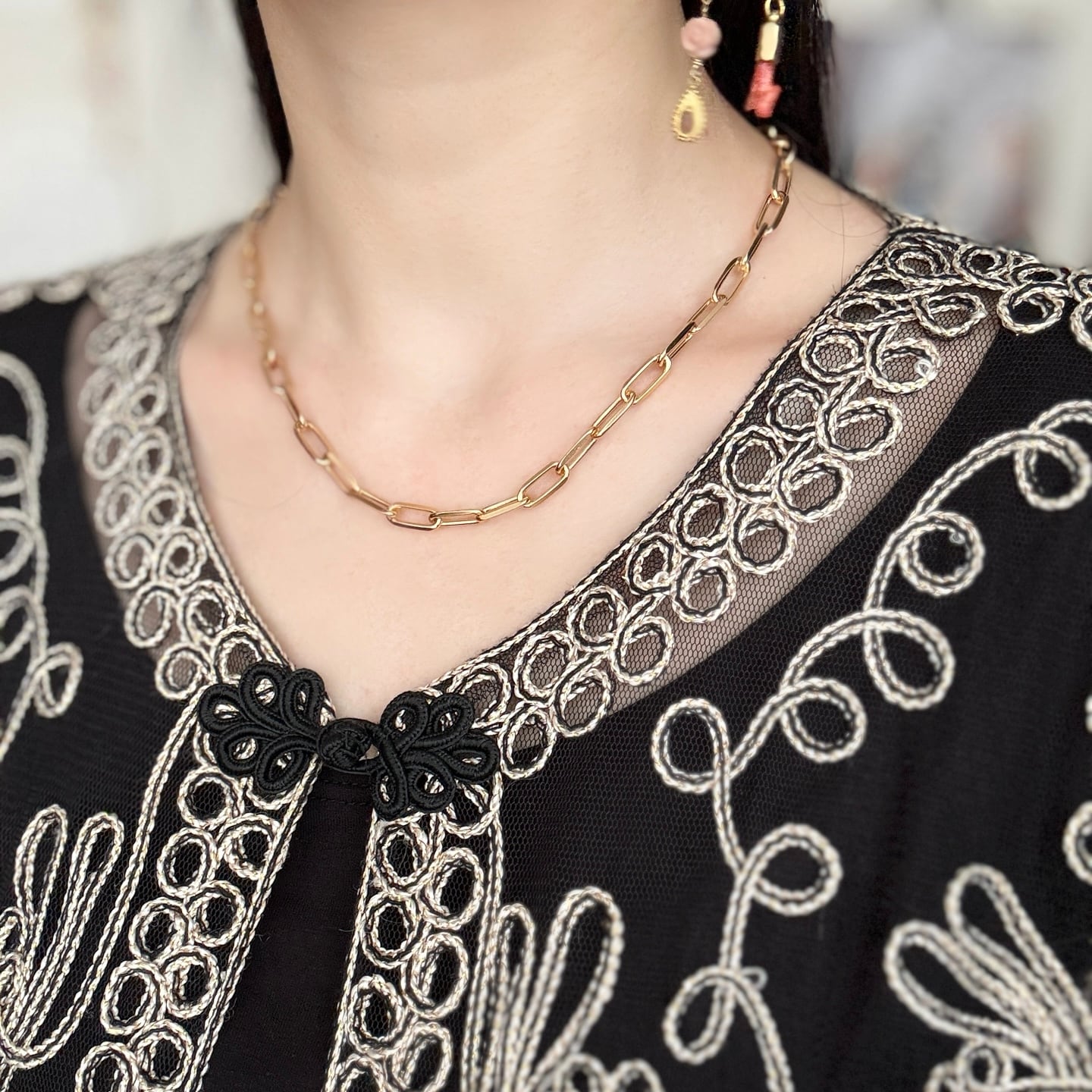 素肌にはもちろん、タートルネックの上から重ねても存在感を放つ、