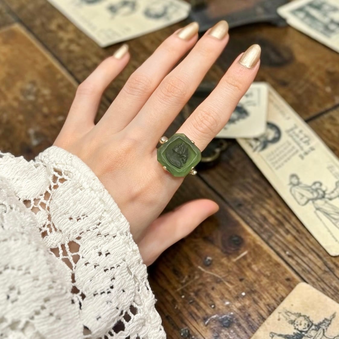 cameo ring -Vert-【vintage】