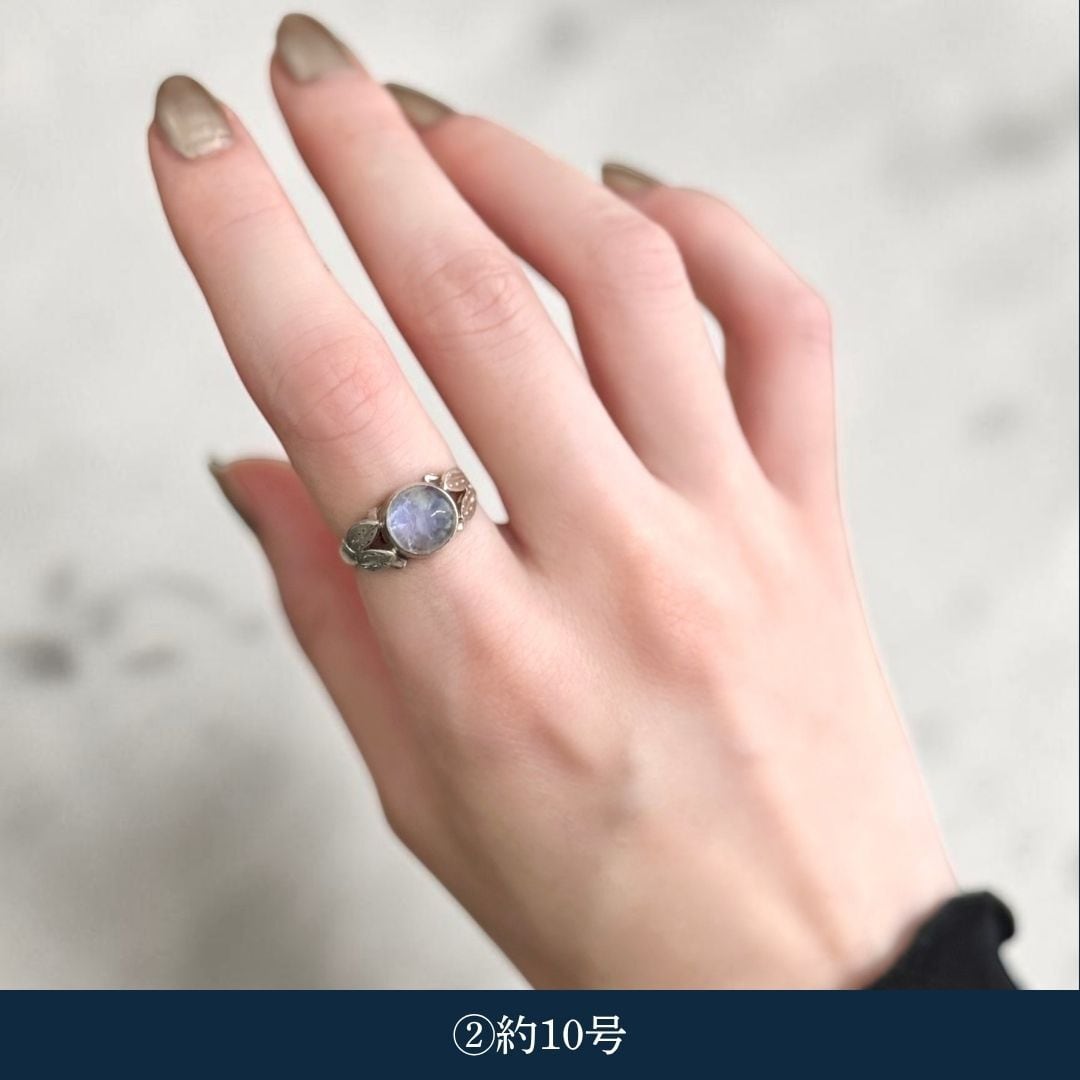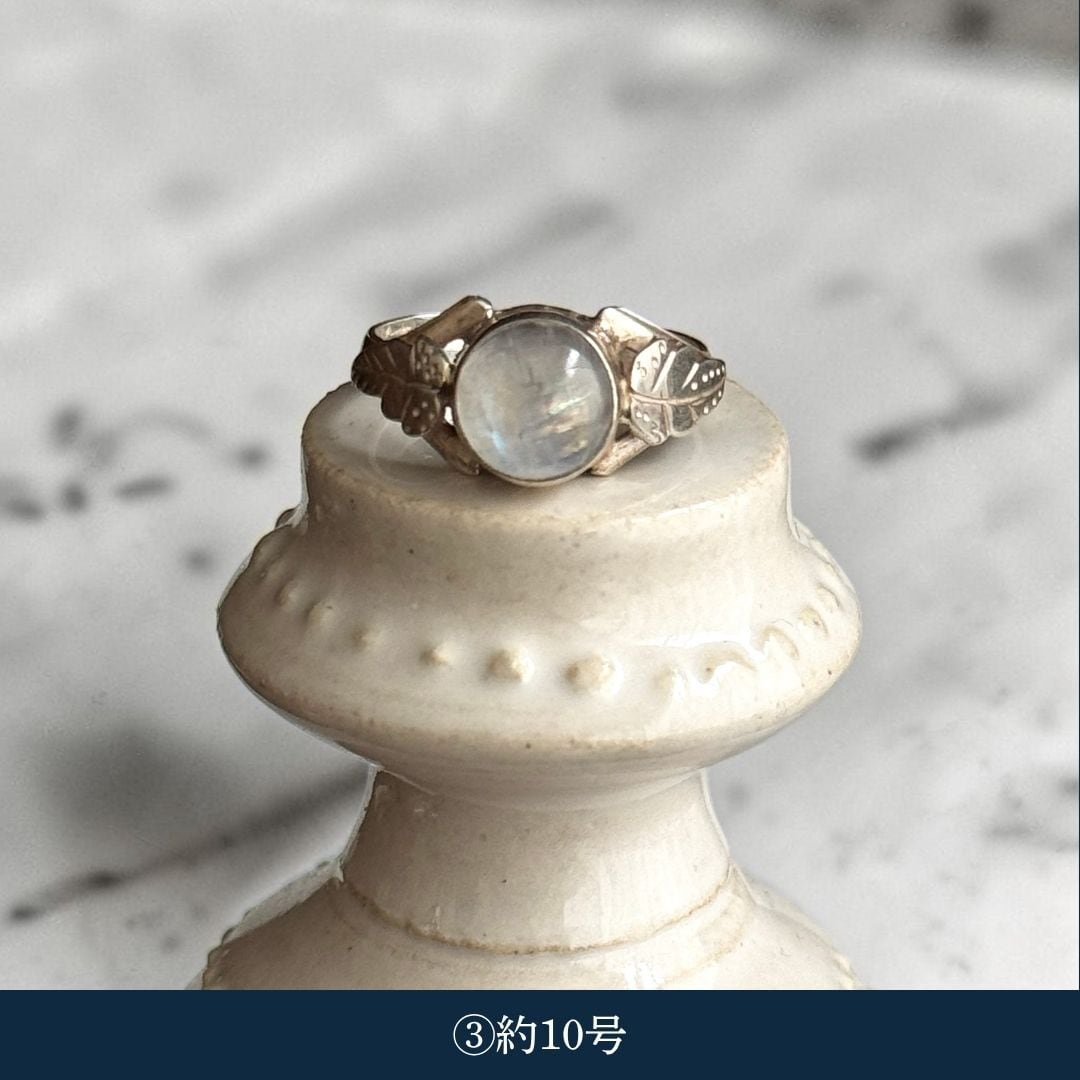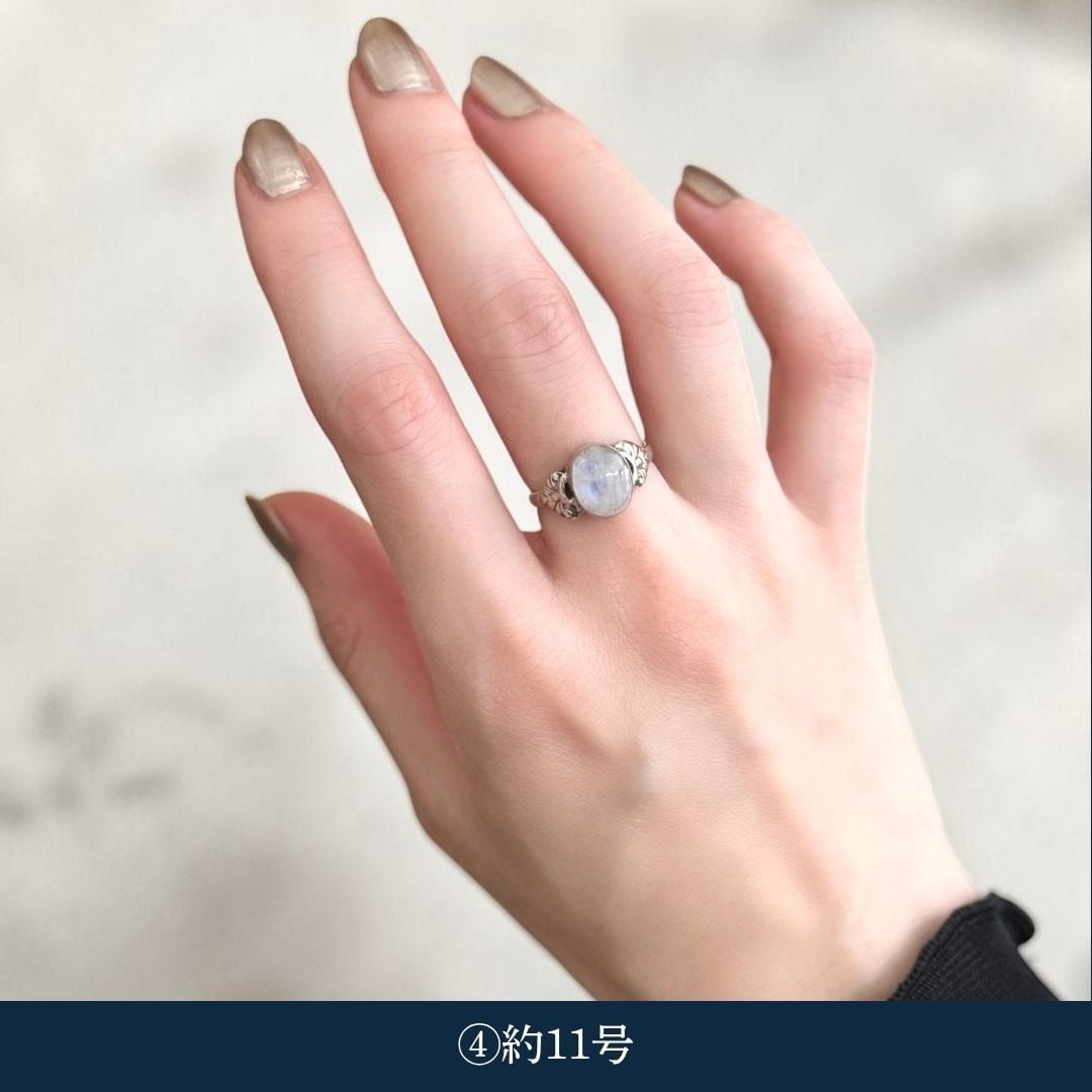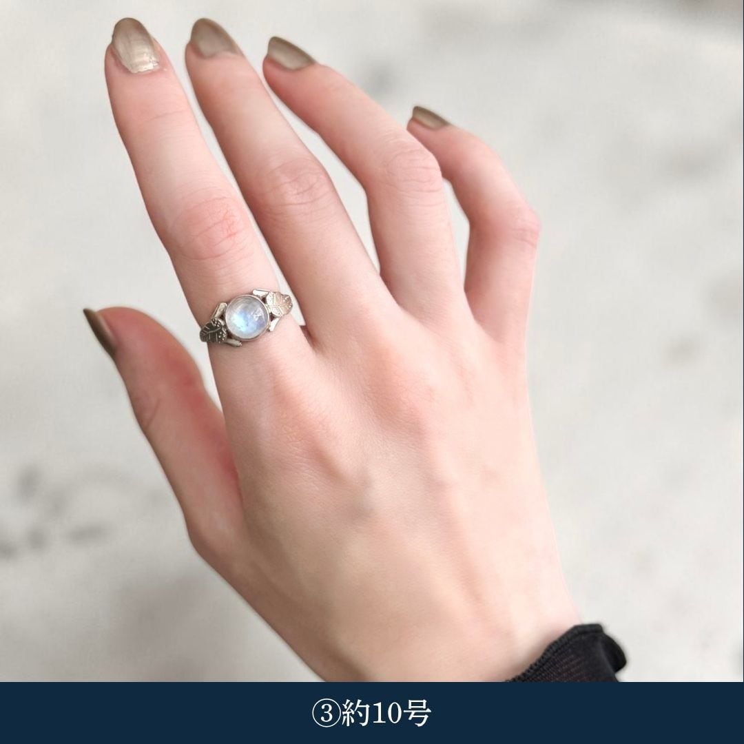・天然石ムーンストーン(乳白):約8.5号〜約11.5号