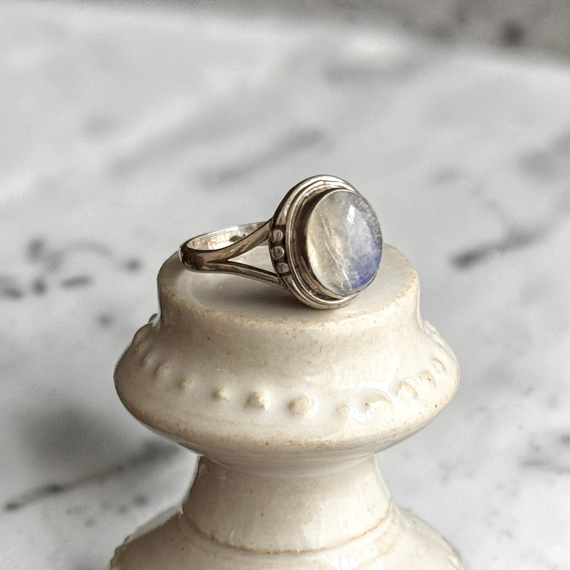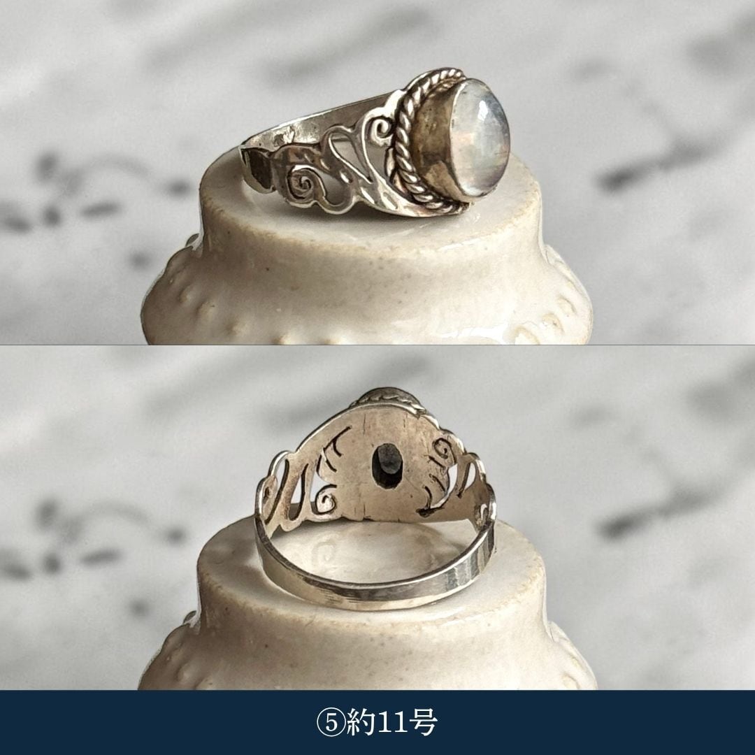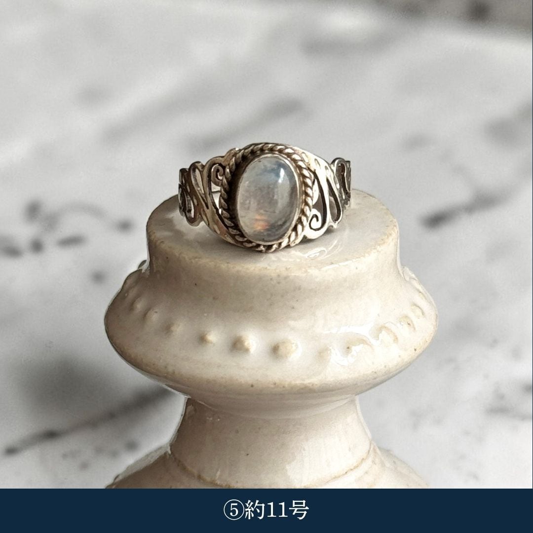 ・天然石ムーンストーン(乳白):約8.5号〜約11.5号