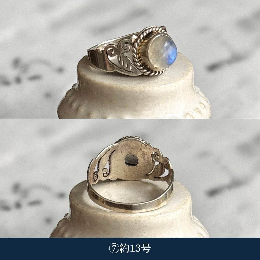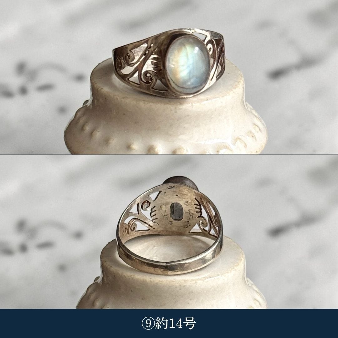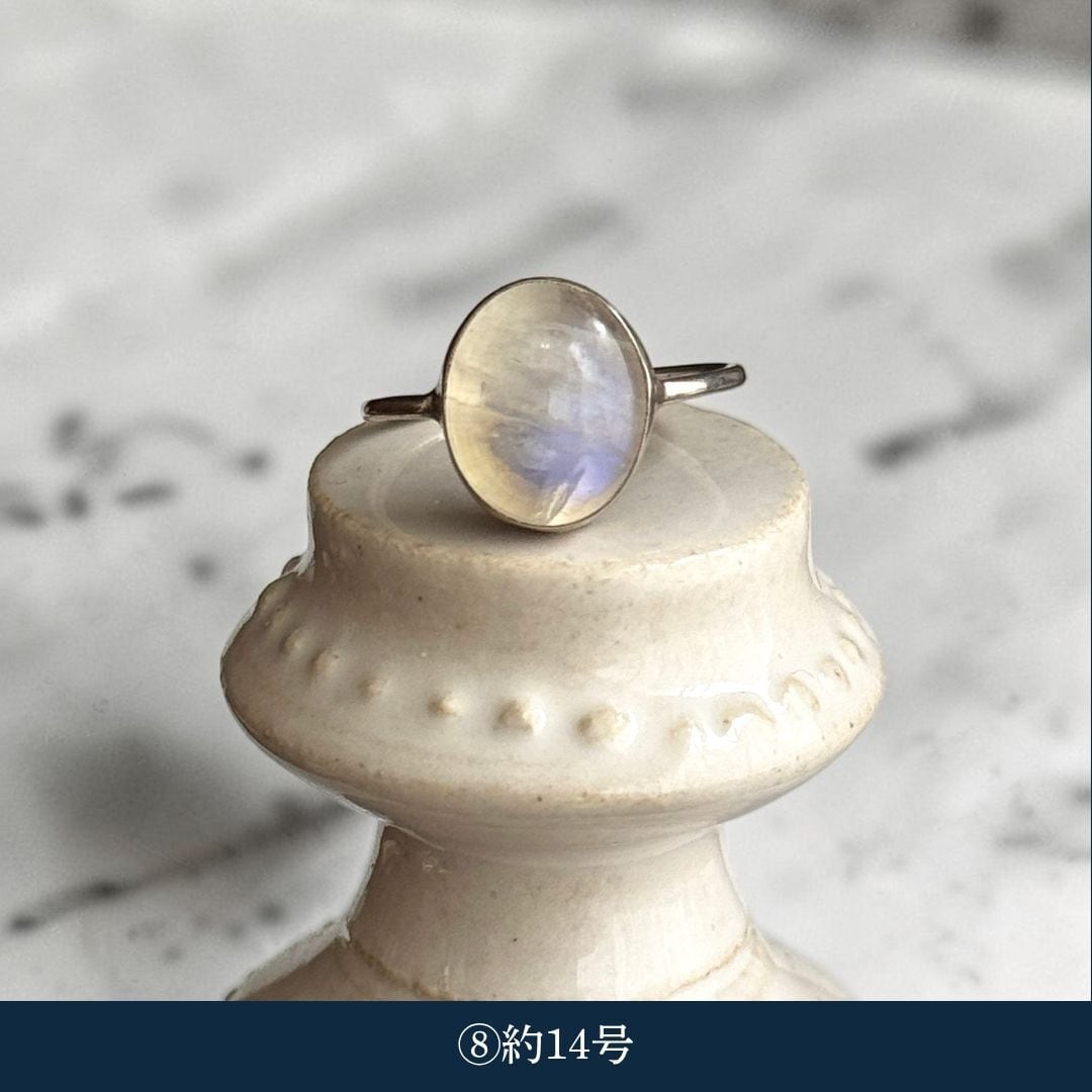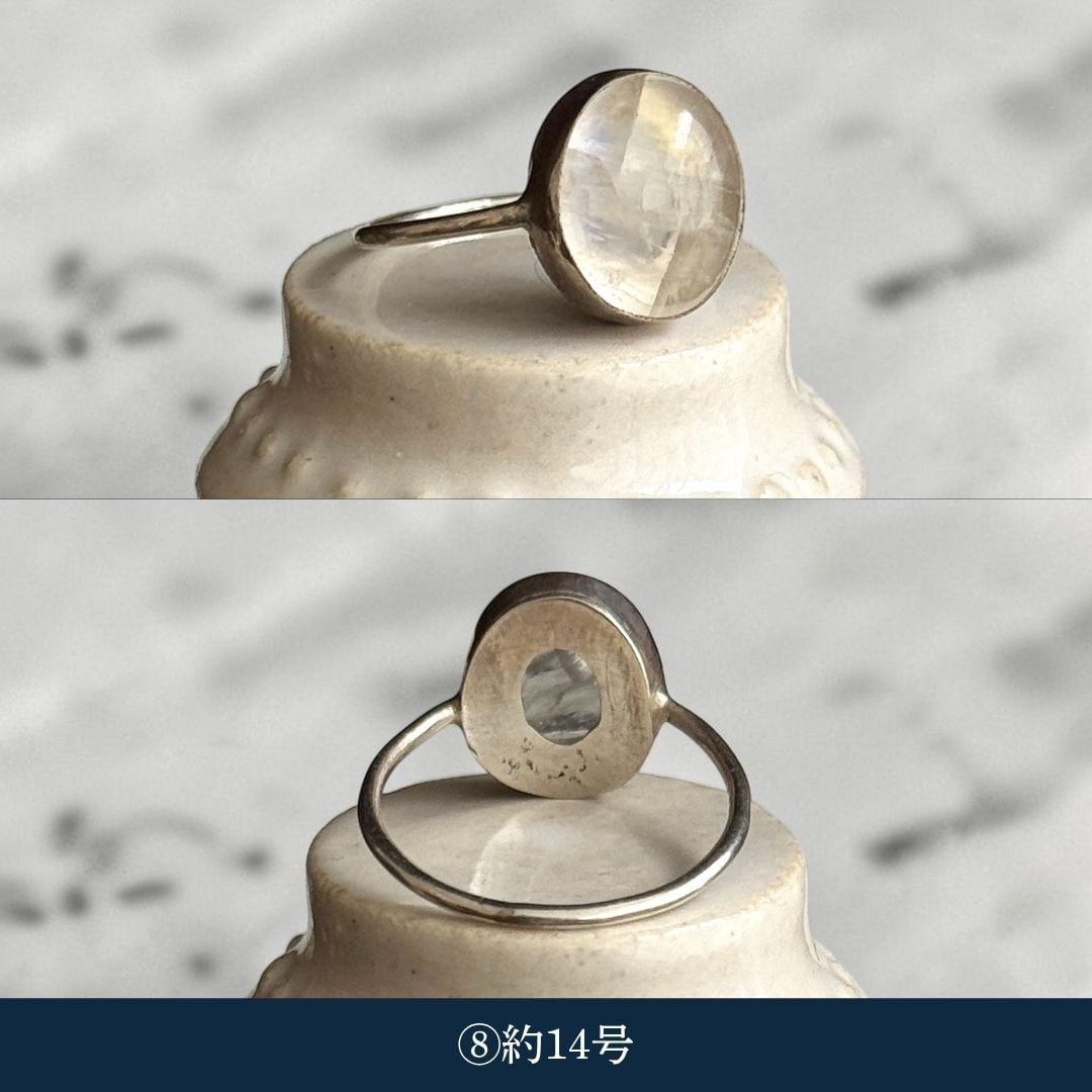 ・天然石ムーンストーン(乳白):約13号〜約18号