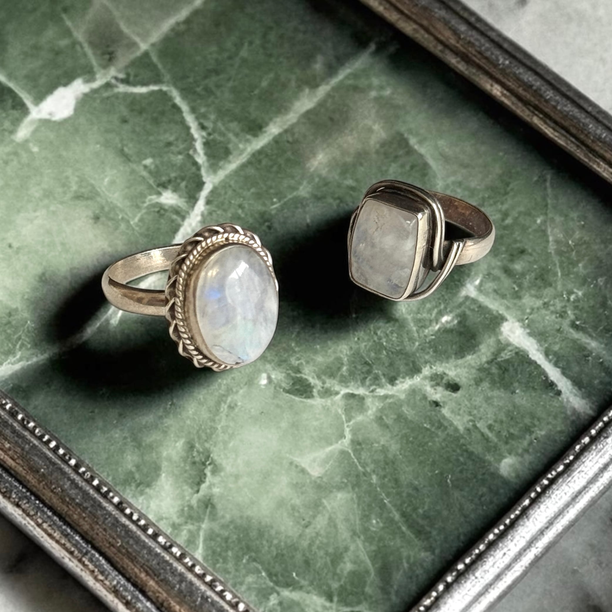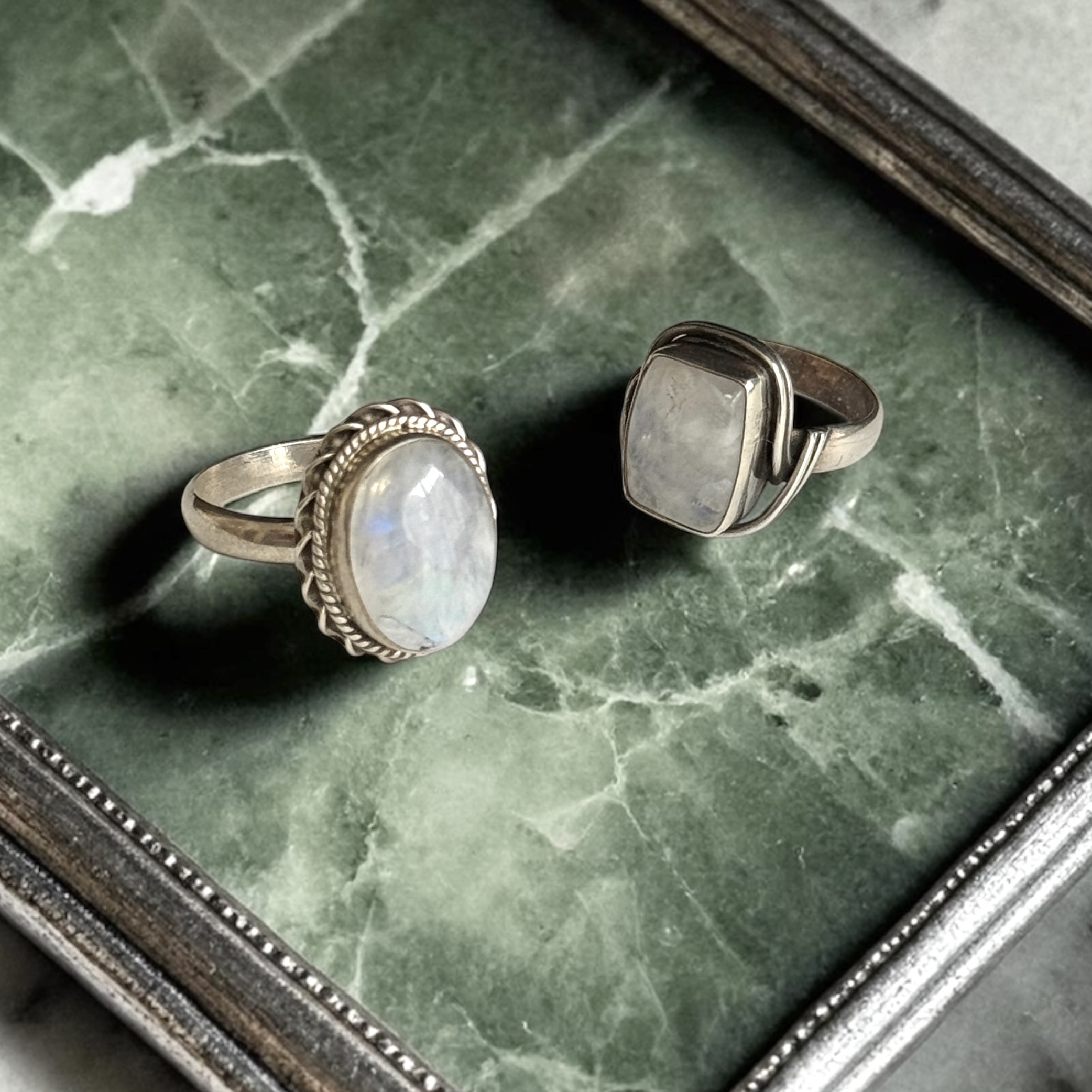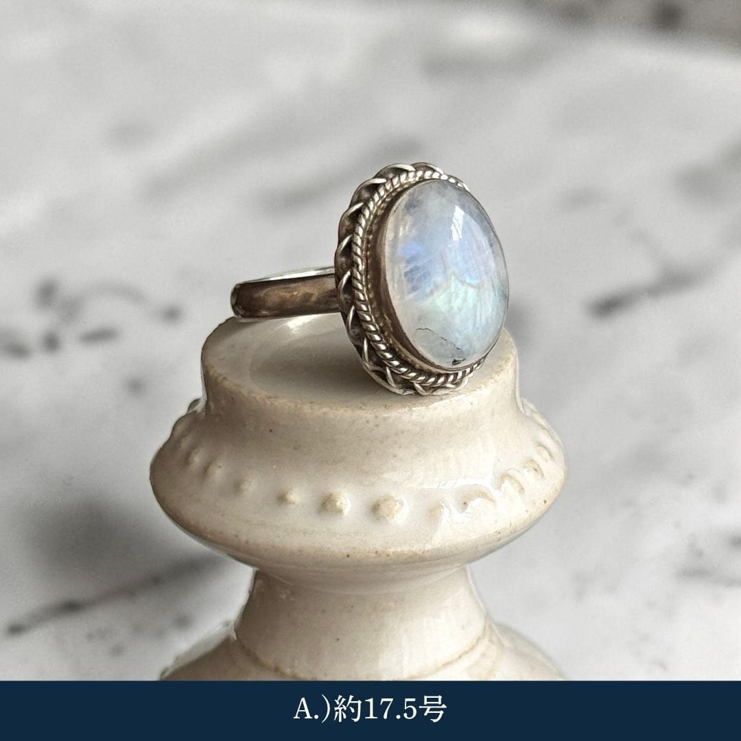 ・天然石ムーンストーン(乳白):約17.5号 / 約9.5号