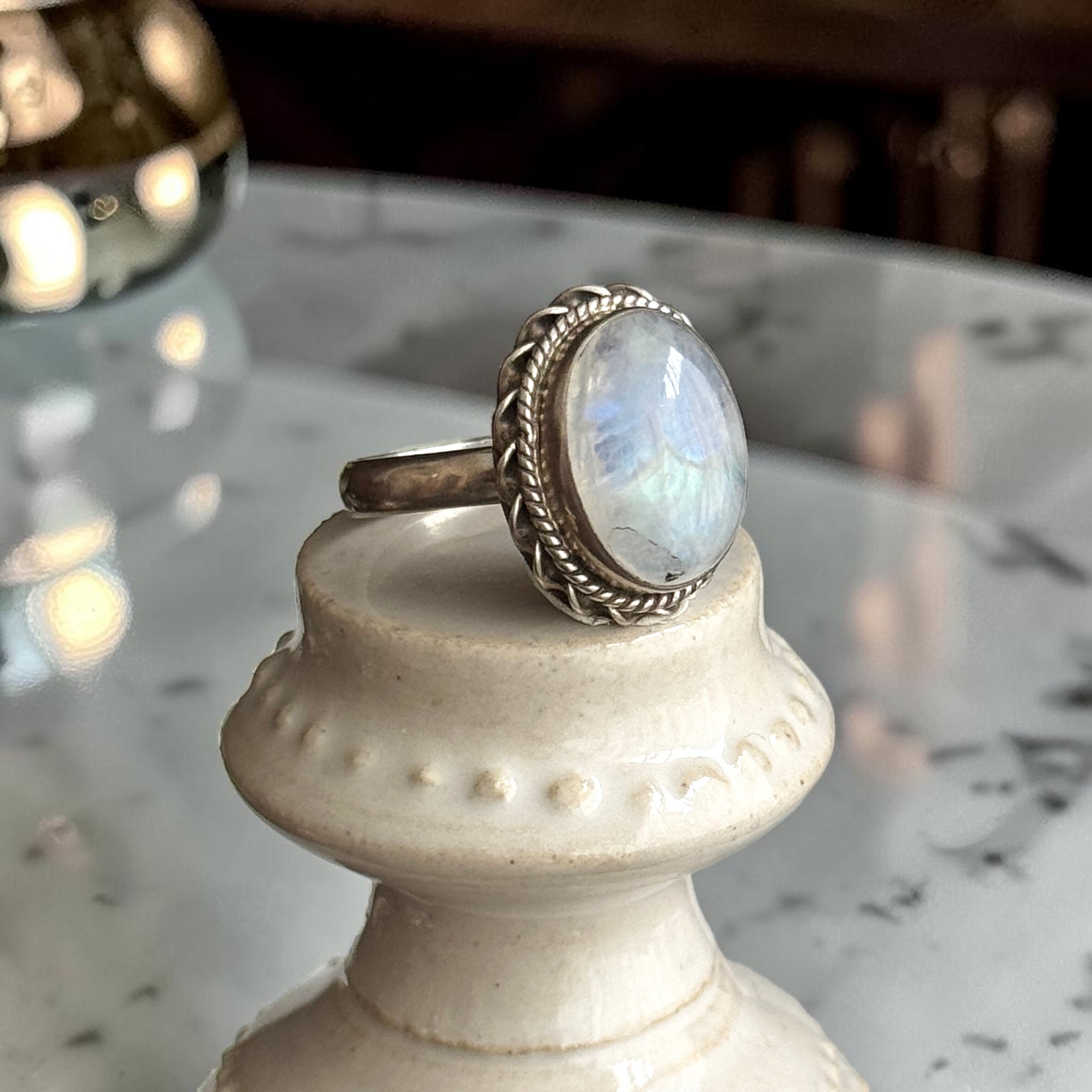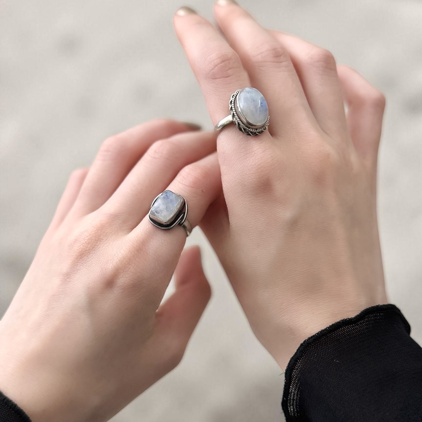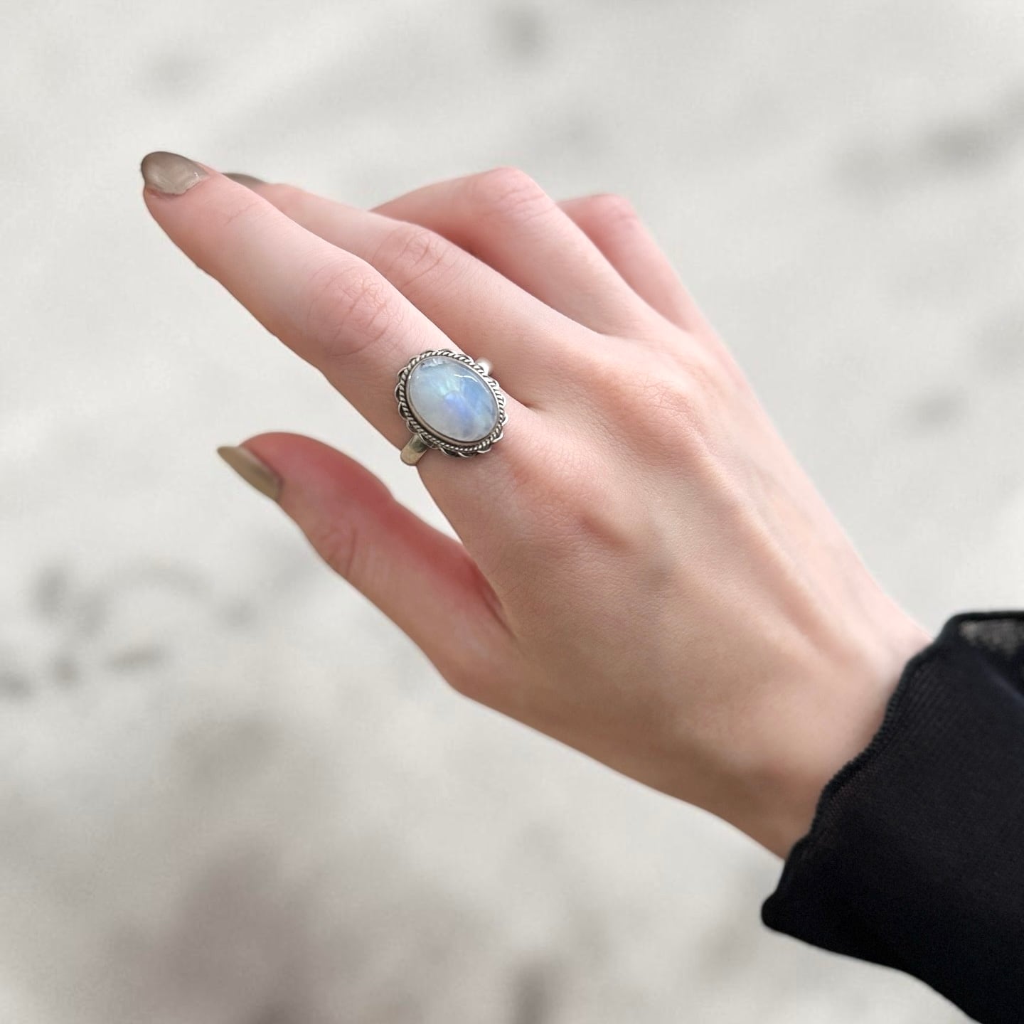 青白く、ミステリアスな光が浮かび上がるムーンストーン。