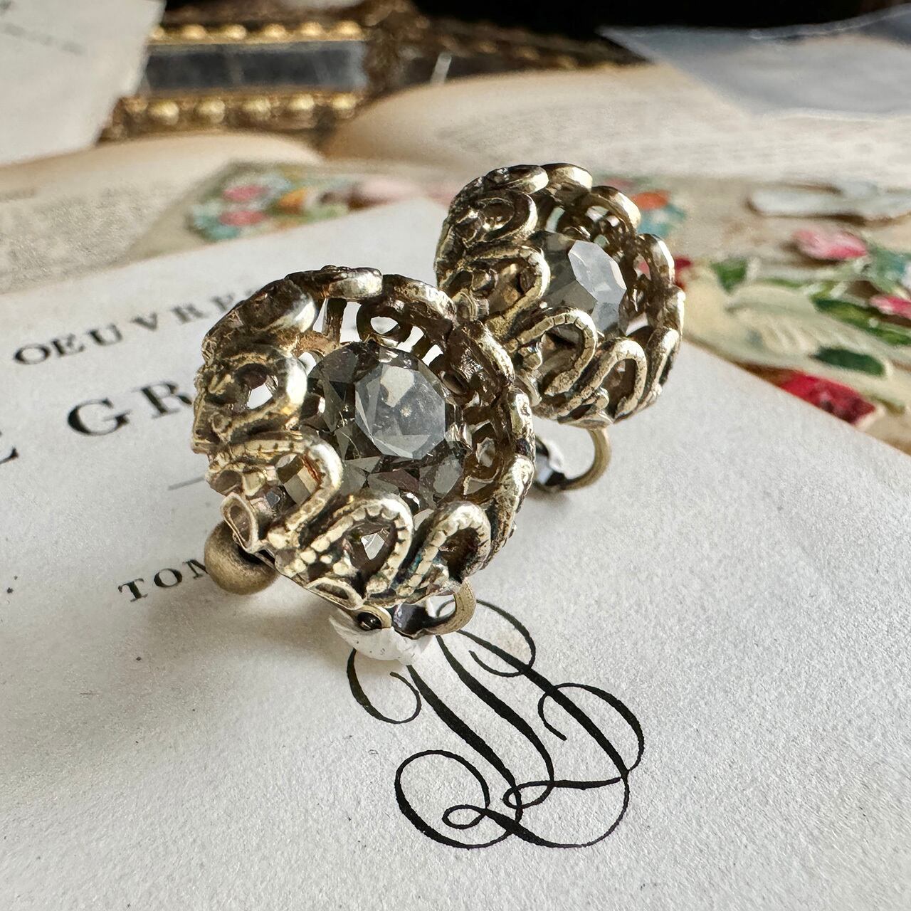 ボトムのフランスアンティークのパーツにはレースのように繊細で可憐な花のモチーフが描かれています。