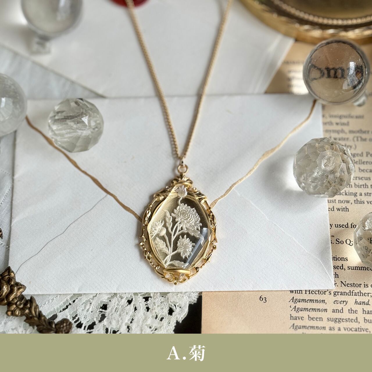 【ネックレス】フランスヴィンテージインタリオガラス , フランスアンティークモチーフ