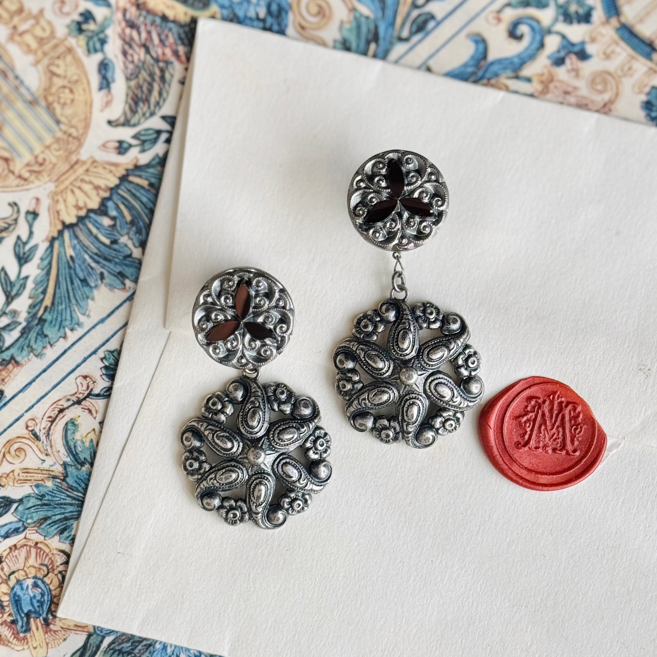 The bottom part was originally intended to be used as buttons. Before these parts could be completed (with the addition of the "shank" on the back), the manufacturer went out of business. These unused parts have now been rescued and repurposed.